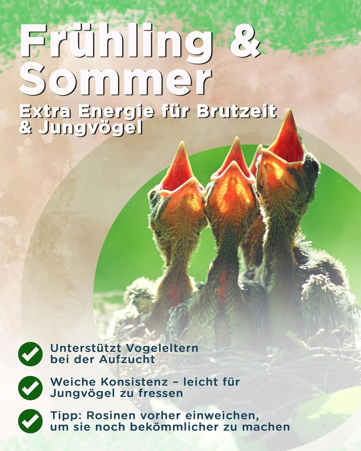 Reich an Energie und Fruchtzucker – Rosinen-Vogelfutter unterstützt Wildvögel bei ihrem Energiebedarf zu jeder Jahreszeit. Perfekt für Frühling, Sommer, Herbst und Winter