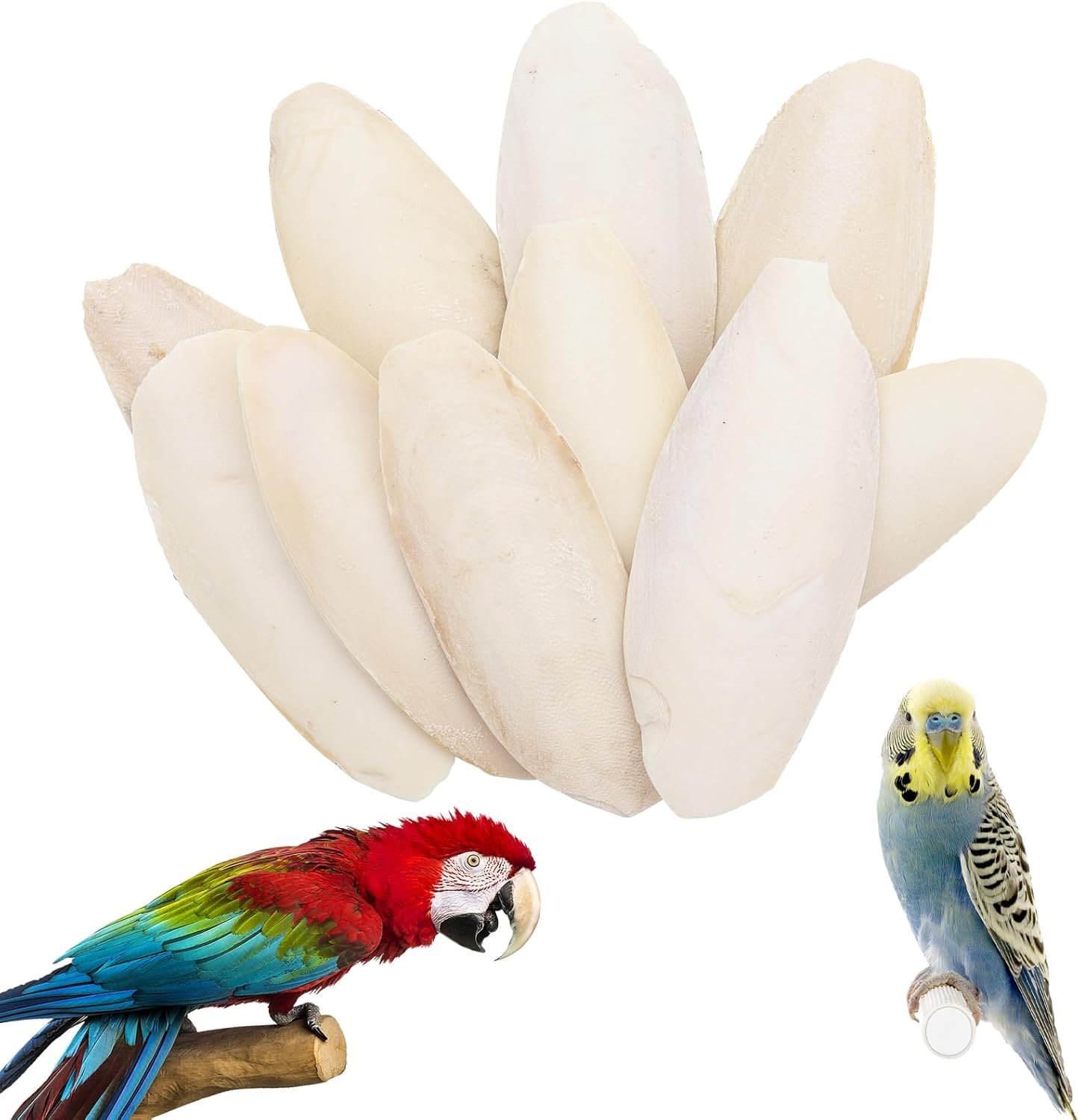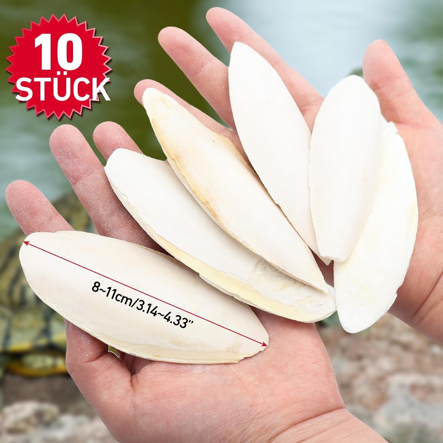 Packungsinhalt: Enthält 10 Stück Sepiaschalen für Vögel, mit einer Größe zwischen 8–11 cm, gleichmäßige Größenverteilung.