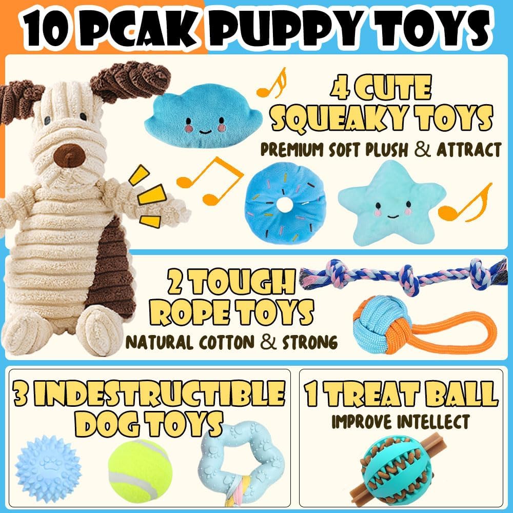 Kauspielzeug für kleine Hunde, Kauspielzeug für Welpen, Spielzeug gegen Langeweile, quietschendes Plüsch-Hundespielzeug-Set für kleine und mittelgroße Hunde, 10er-Pack