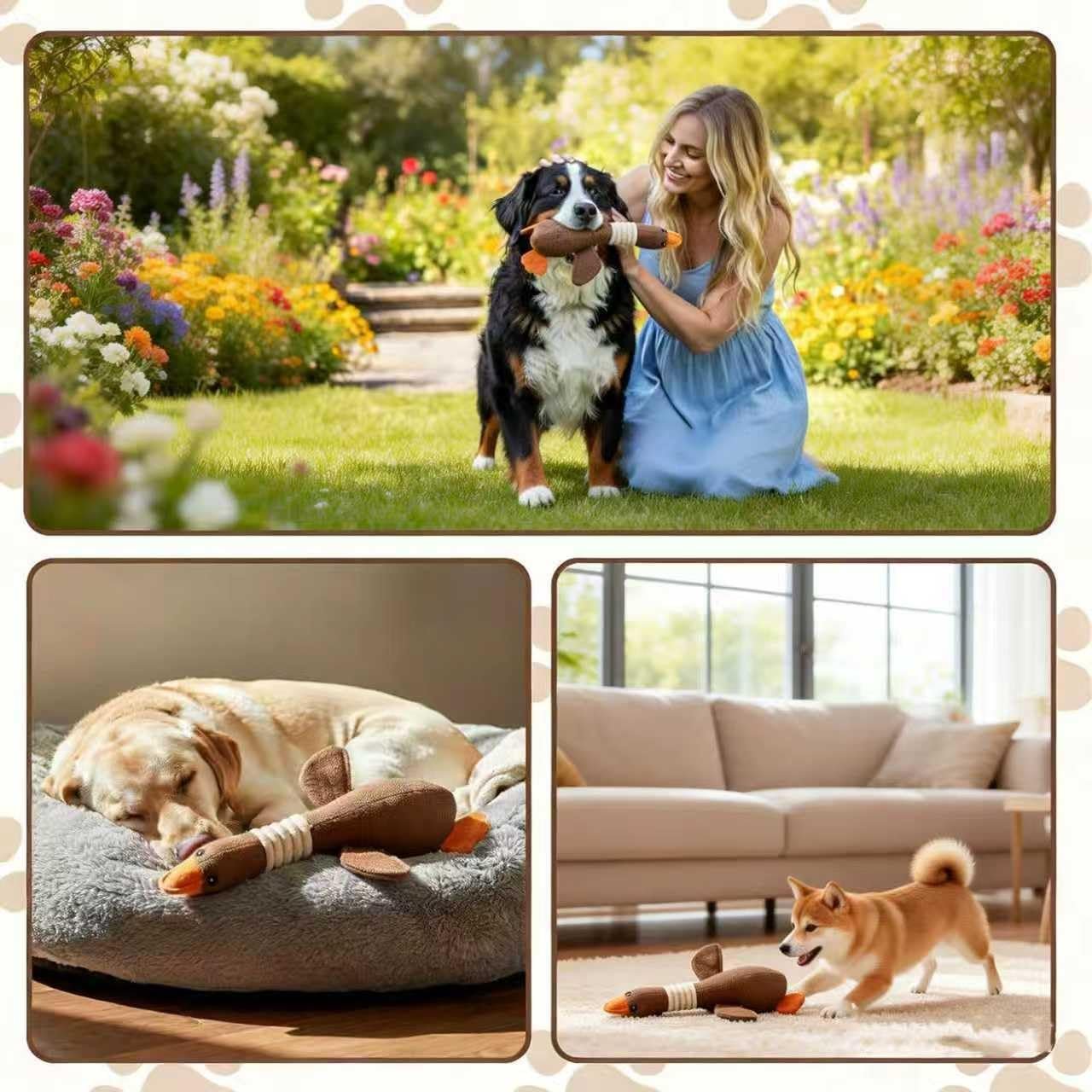 2.Die hunde spielzeug ist weich und hautfreundlich,Das leichte Design ermöglicht es Hunden, das Spielzeug einfach zu tragen und zu spielen, ohne Verletzungsgefahr