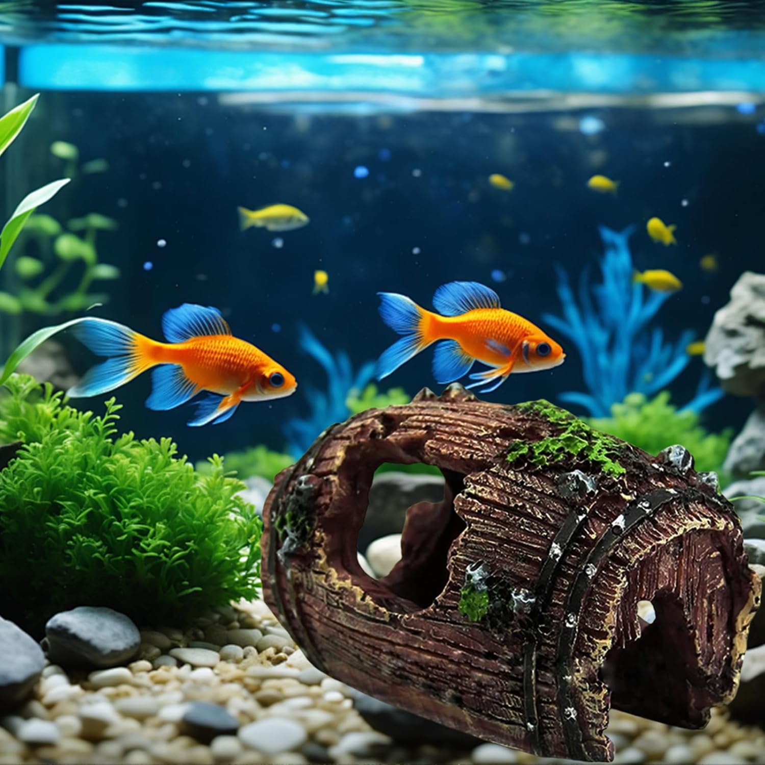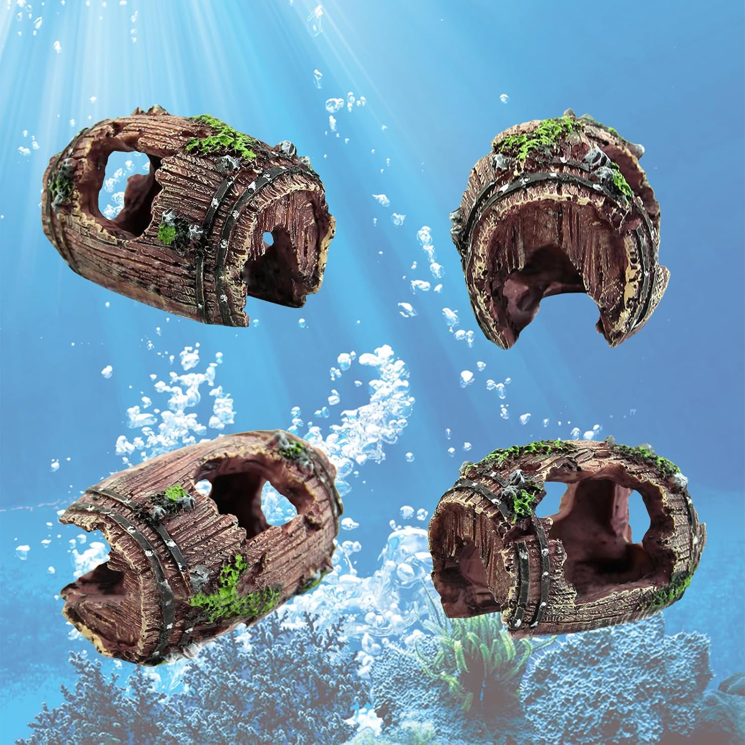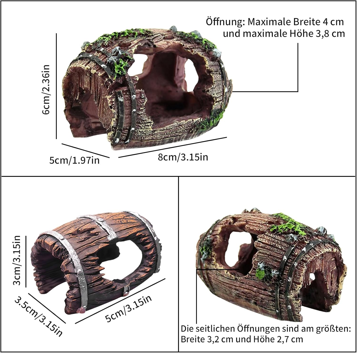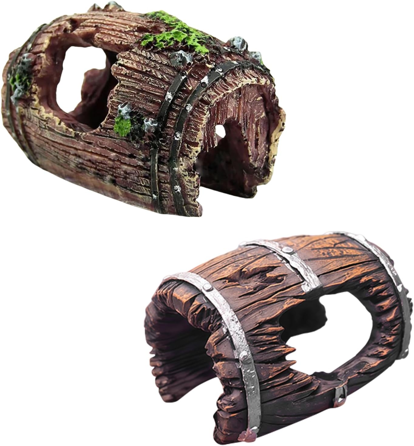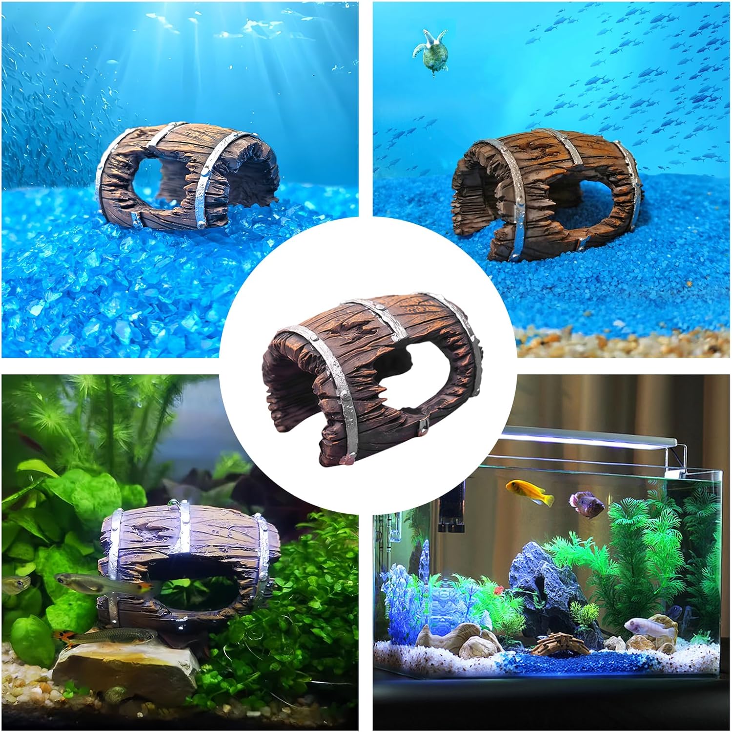 Realistisches Design: Das kaputte Weinfass ist mit abgenutzter Farbe, Höhlen und Moos verziert, was sehr realistisch aussieht und dem Aquarium ein natürliches Gefühl verleiht, wenn es darin platziert wird