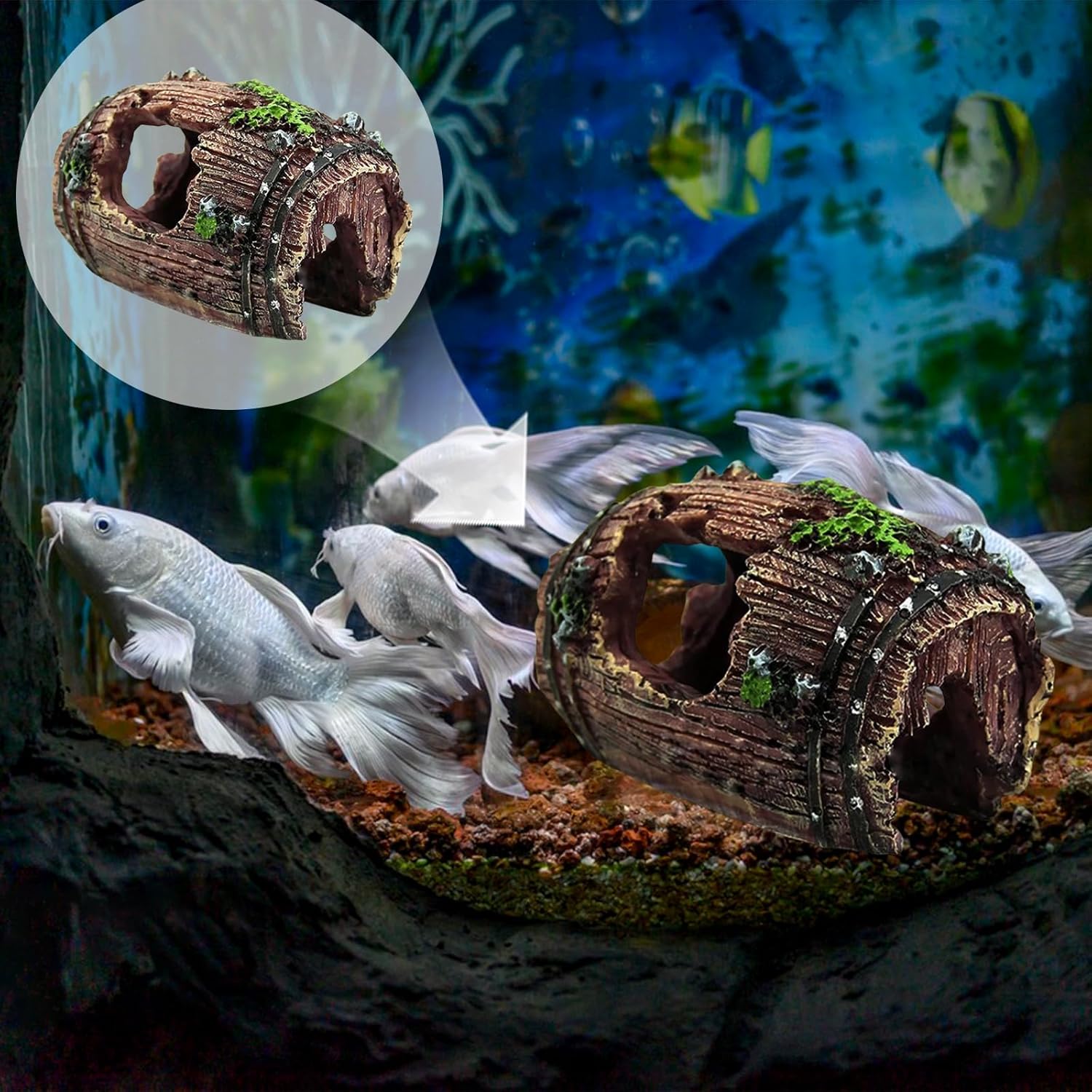2 Stück Aquarium-Dekoration, Baumstamm, Simulationsmoos-Aquarium-Dekoration, Harz-Raum-Aquarium-Höhlenornament, dekorativer hohler Stamm für Reptilienversteck oder Betta-Fisch-Schwimmlebensraum