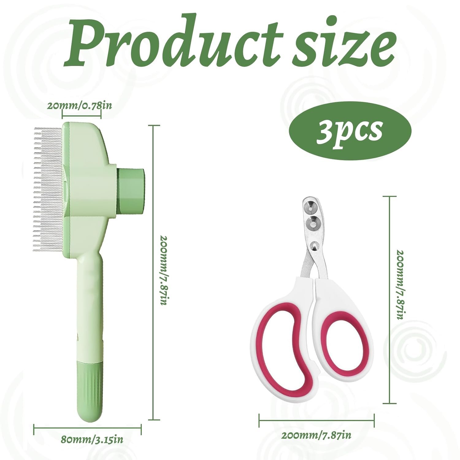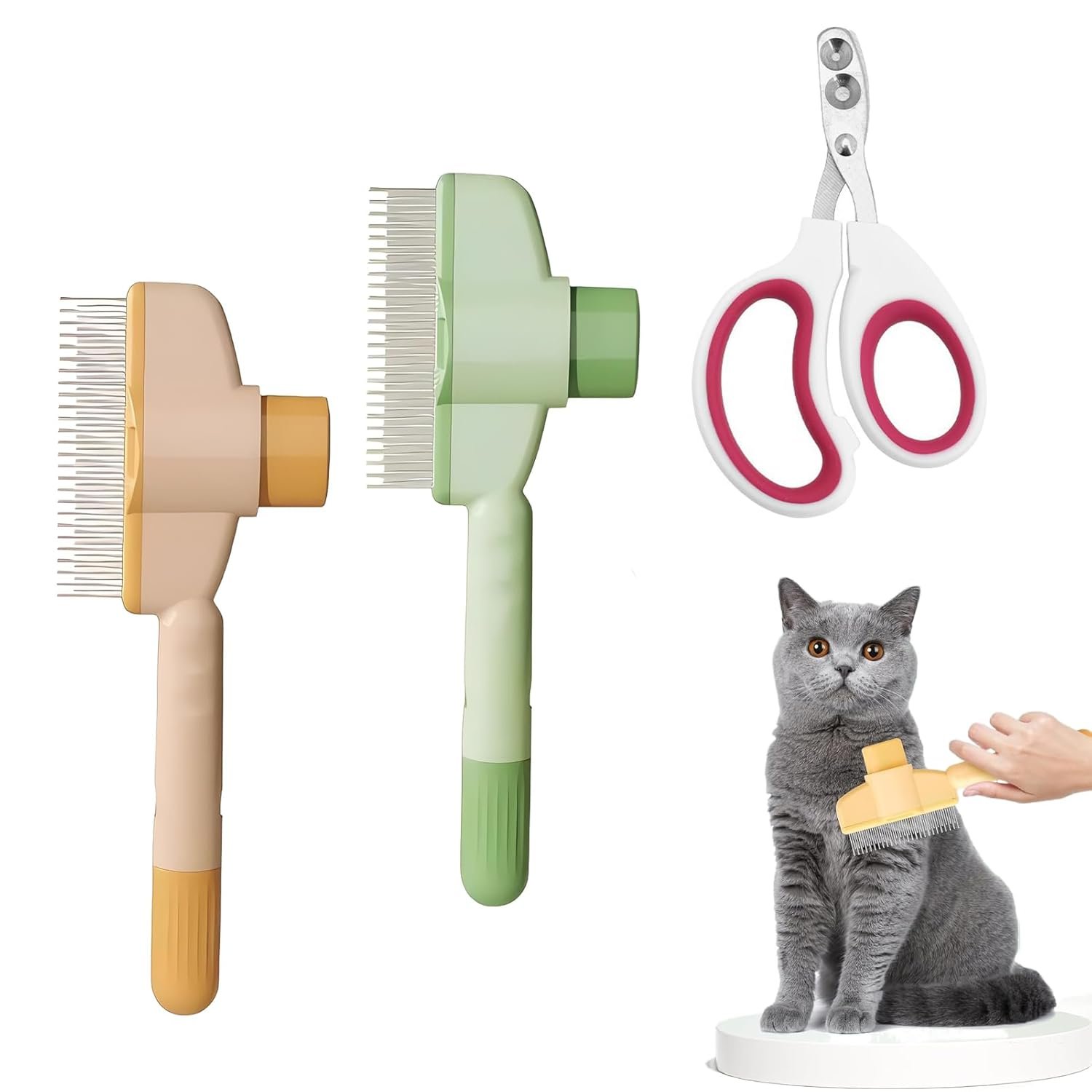 Material: [plastic/soft rubber/stainless steel] Farbe: [rose red/banana yellow/mint green] Größe: [comb: 8 x 20 cm; scissors: 6.3 x 10.5 cm] Das Paket beinhaltet: [fur flash brush cat] & [2 pieces] Produktbeschreibung: 【Selbstreinigungsfunktion】Entfernen Sie lose Haare ganz einfach per Knopfdruck aus der Katzenbürste – ohne Ziehen, einfach und unkompliziert. Der Katzenkamm ist perfekt für den täglichen Gebrauch und spart wertvolle Kämmzeit. Effektives Kämmen von Unterwolle und Deckhaar: Die innovative Fellblitzbürste kombiniert lange und kurze Edelstahlzähne, um Haarballen zu lösen und gleichzeitig lose Unterwolle zu entfernen, insbesondere bei mittel- und langhaarigen Katzen. 【Inklusive Krallenschere mit zwei Löchern】Im Gegensatz zu anderen Produkten enthält unser Set zwei Katzenkammbürsten, eine Krallenschere mit zwei Löchern (2 mm & 4 mm) und eine Schutzhülle – sicher, vielseitig und für alle Pfotenformen geeignet. Sanfte Pflege: Diese Katzenfellbürste verfügt über einen ergonomischen, rutschfesten Griff und einen abgerundeten Bürstenkopf aus Metall, der sanft massiert, die Durchblutung fördert und die Gesundheit Ihres Haustiers verbessert. Multifunktional: Fellblitzbürste Katze ist für kurz- und langhaarige Haustiere geeignet. Ob Katze, Hund oder Kaninchen, dieses Kammset kommt problemlos mit den unterschiedlichsten Haarstrukturen zurecht. Verhindert effektiv Haarausfall zu Hause, sorgt für ein sauberes und hygienisches Zuhause und niedrige Wartungskosten.