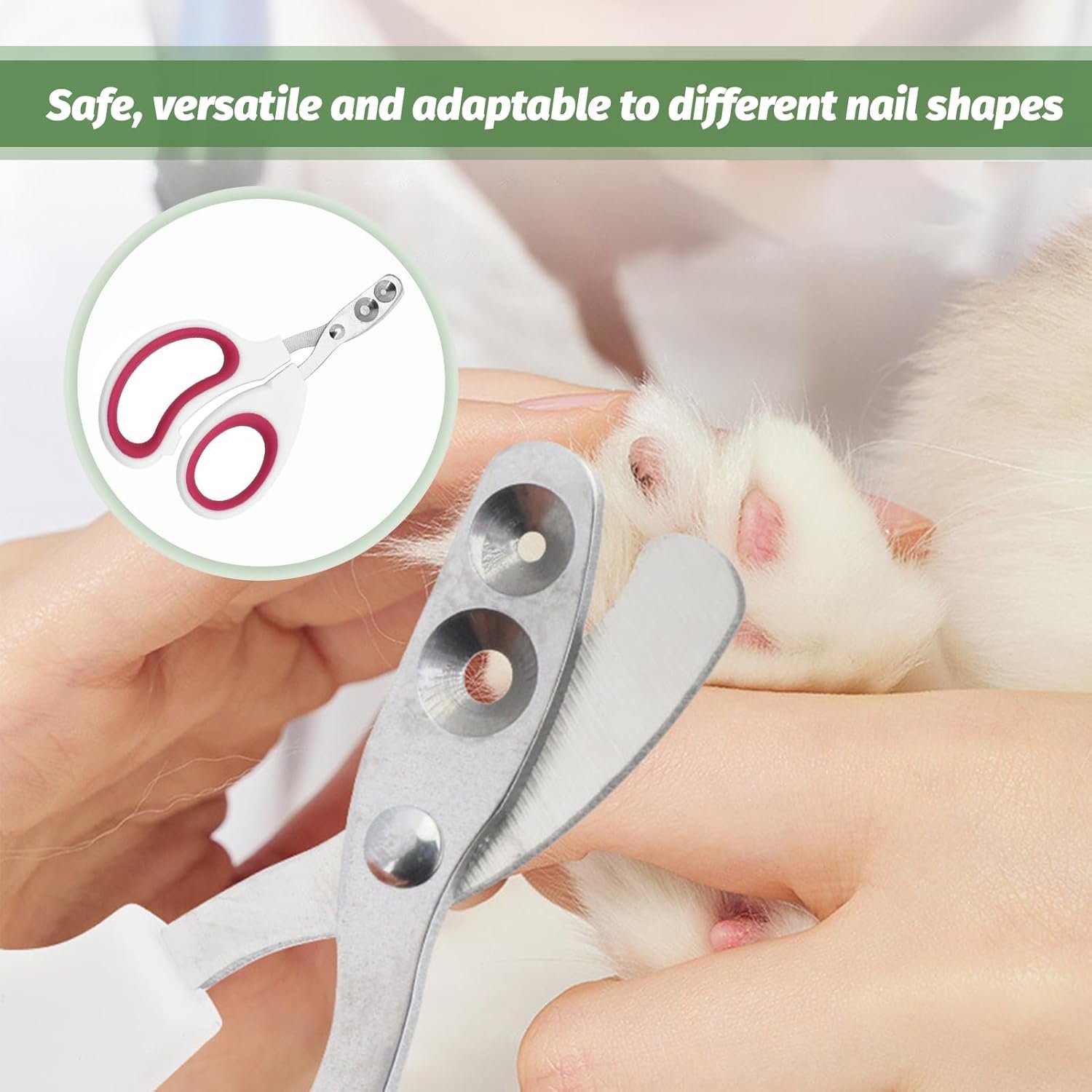 【Inklusive Krallenschere mit zwei Löchern】Im Gegensatz zu anderen Produkten enthält unser Set zwei Katzenkammbürsten, eine Krallenschere mit zwei Löchern (2 mm & 4 mm) und eine Schutzhülle – sicher, vielseitig und für alle Pfotenformen geeignet.