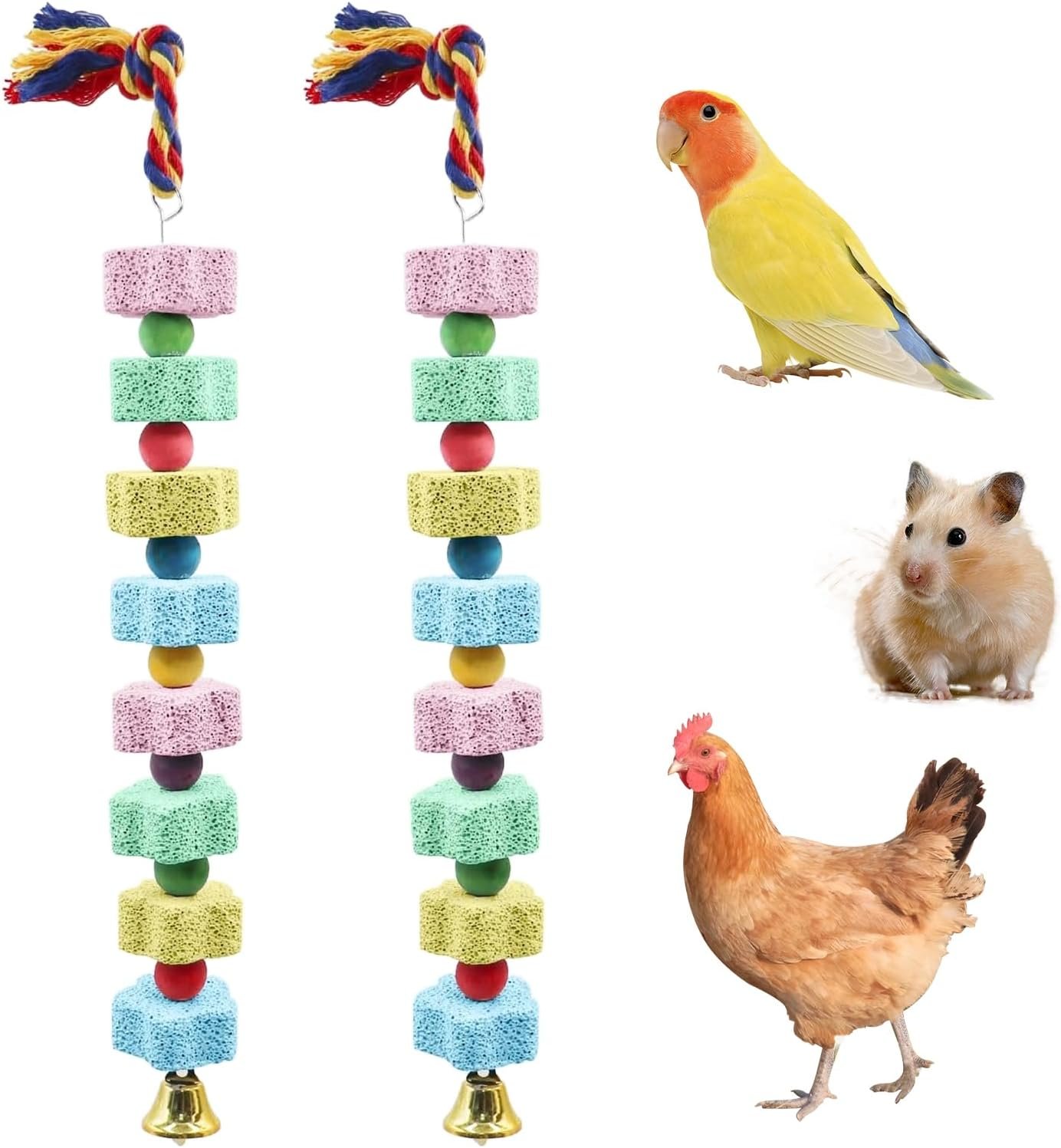 2 Stück Papageienspielzeug, 35 cm Wellensittich-Backenzahnspielzeug mit Glocke
