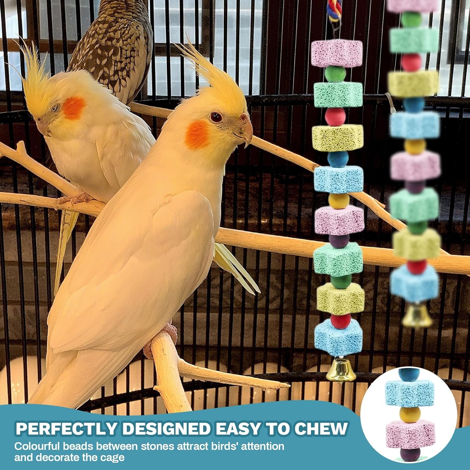 Langlebiges Material: Unser Vogelspielzeug besteht aus hochwertigem Mineralstein, porösem Mineralstein mit unebener Oberfläche, sicher zum Kauen, enthält keine Zusatzstoffe, Klebstoffe, die langlebig und sicher für Ihre Vögel sind.