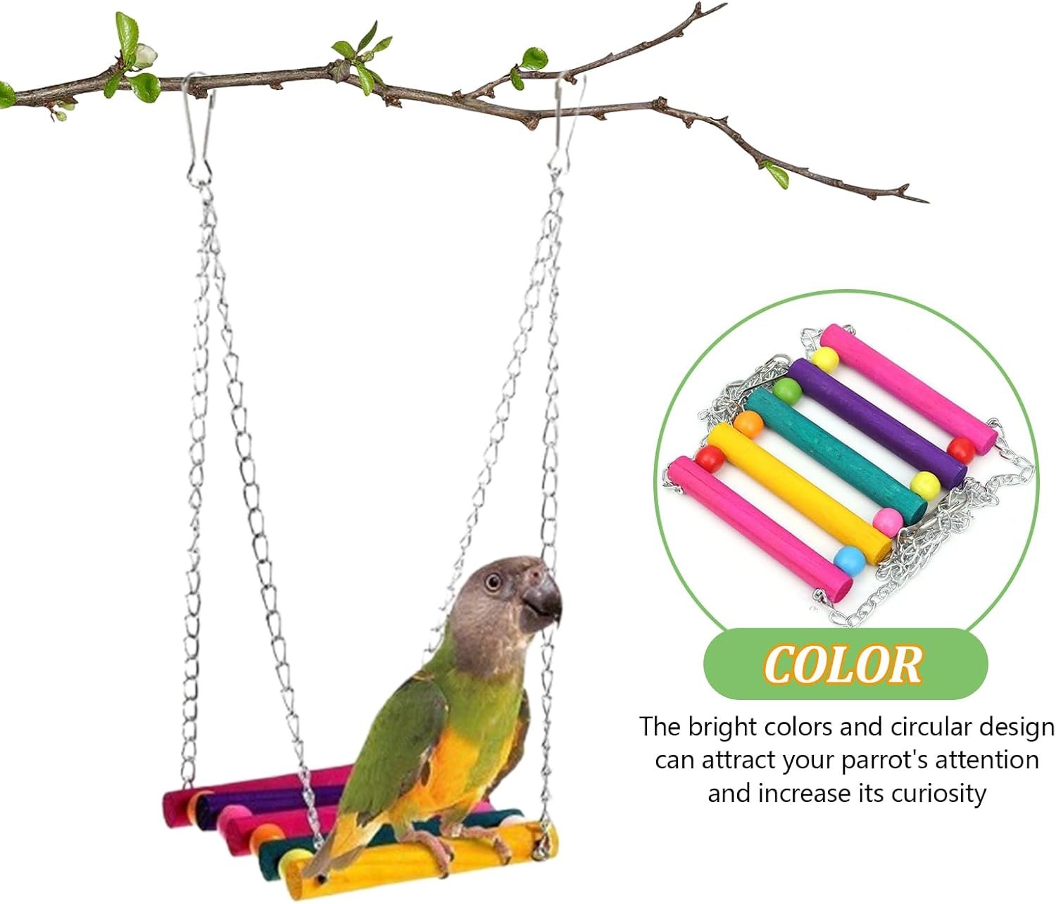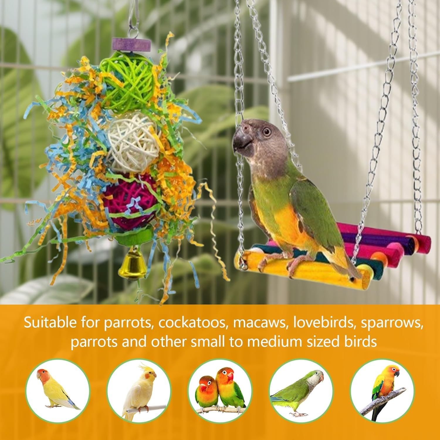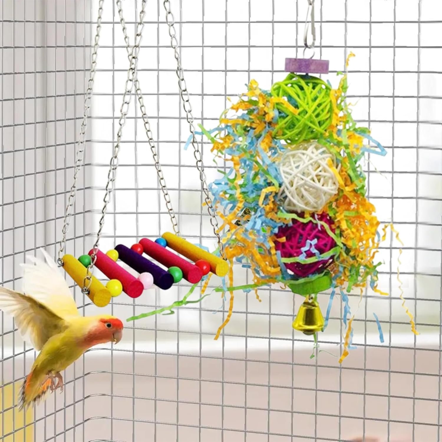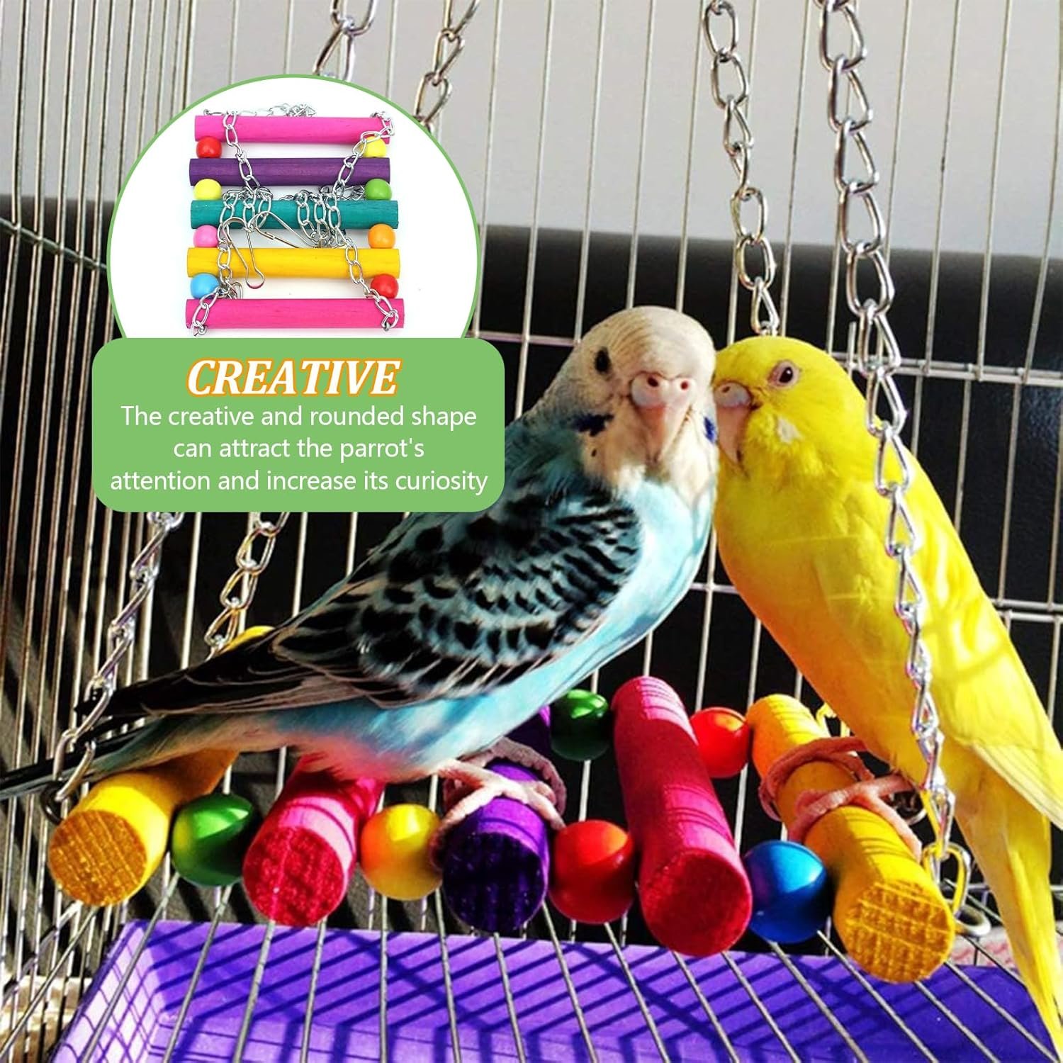 2. Vogelspielzeug für Wellensittiche verwendet hochfeste Metallhaken zur einfachen Befestigung verschiedener Vogelkäfige. Wellensittichspielzeug bietet vielfältige Spielmöglichkeiten für Papageien, Stare und Co. und wird so den täglichen Bedürfnissen an Unterhaltung und Sport gerecht.