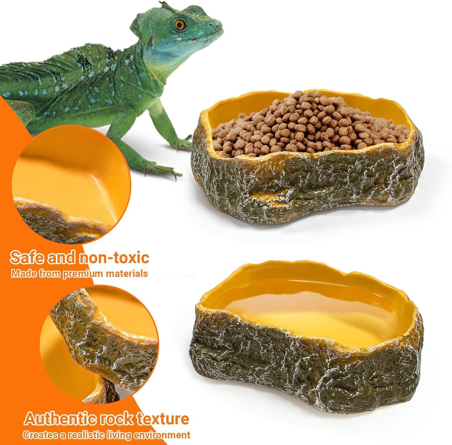 Vielseitig: Reptilienschalen sind weit verbreitet und werden für verschiedene Reptilienarten wie Schildkröten, Eidechsen, Geckos und Schlangen verwendet; Unabhängig davon, ob lebende Insekten oder sauberes Wasser gefüttert werden, können sie den täglichen Futterbedarf decken.