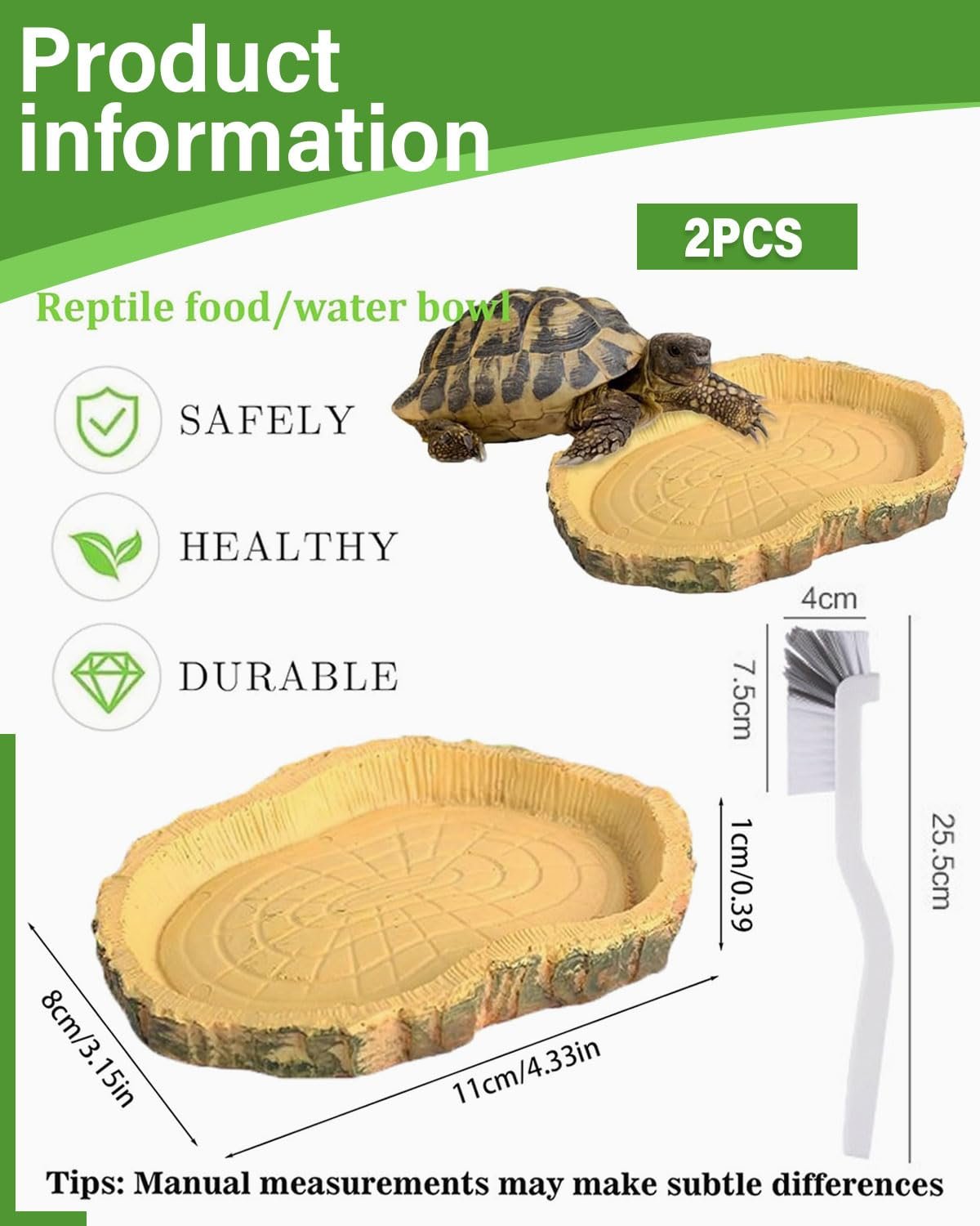 PRODUKTABMESSUNGEN Dieser kompakte Futter- und Wassernapf für Reptilien misst 11 x 8 x 1 cm und ist ideal für kleine Reptilien wie Frösche, junge Leopardgeckos oder kleine Schlangen.