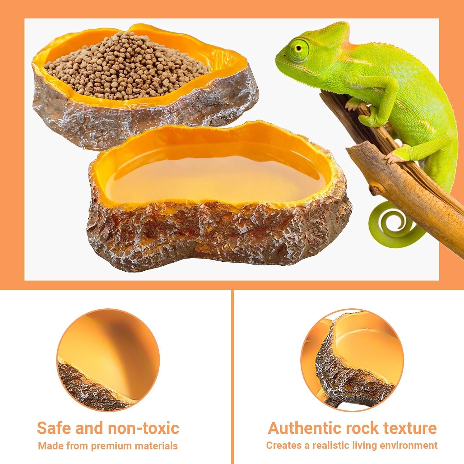 Zweiteiliges Set: Terrarium-Trinknapf, in verschiedenen Größen erhältlich, geeignet für Eidechsen, Geckos, Hornfrösche, Spinnen, Hamster und Schildkröten und erfüllt die Futter- und Trinkbedürfnisse verschiedener Tiergrößen
