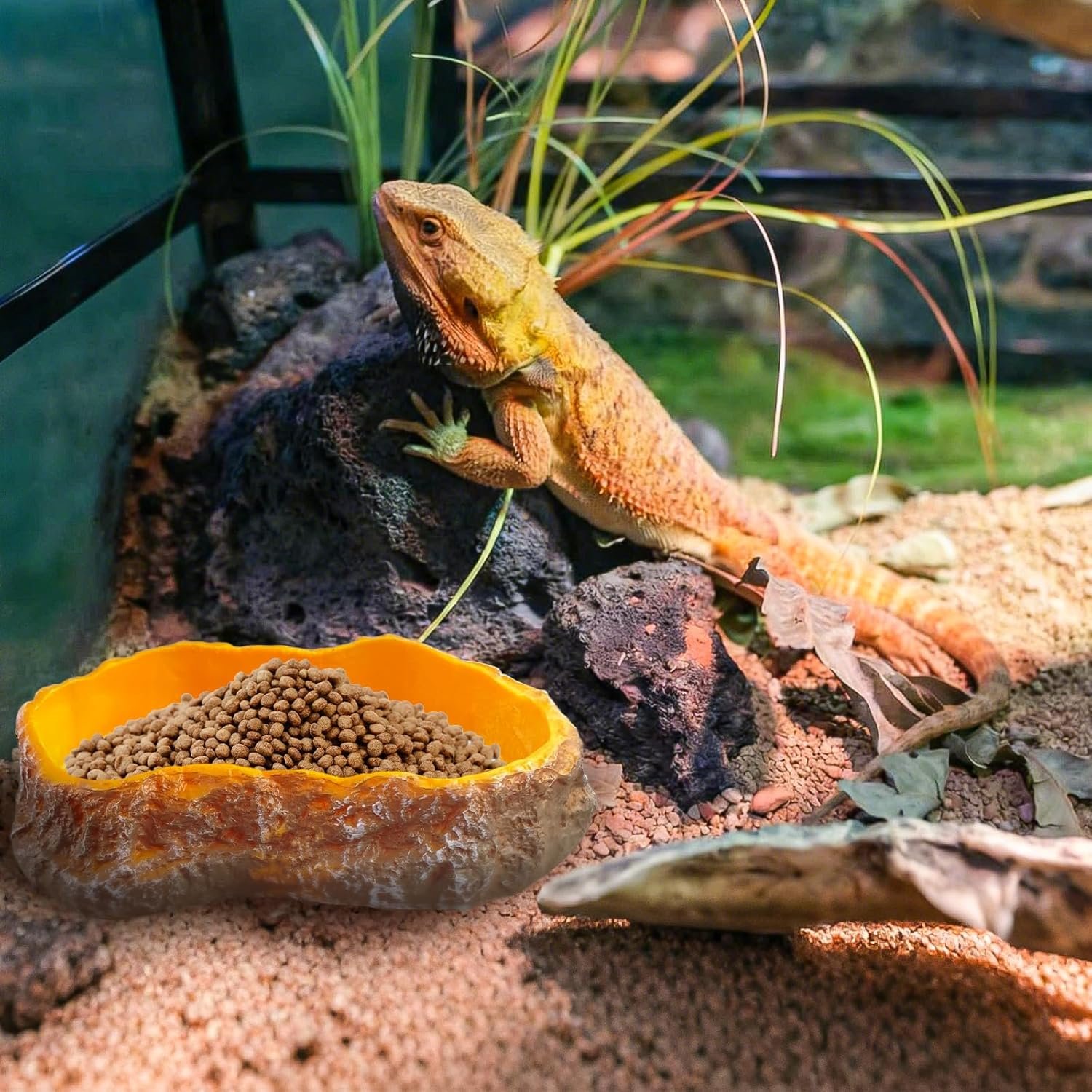 Stabil und auslaufsicher: Terrarium-Wassernapf, der breite, flache Boden sorgt für Stabilität und minimiert das Risiko, dass Haustiere den Napf umstoßen; Dies reduziert effektiv das Verschütten von Futter und Wasser und hält das Gehäuse sauber