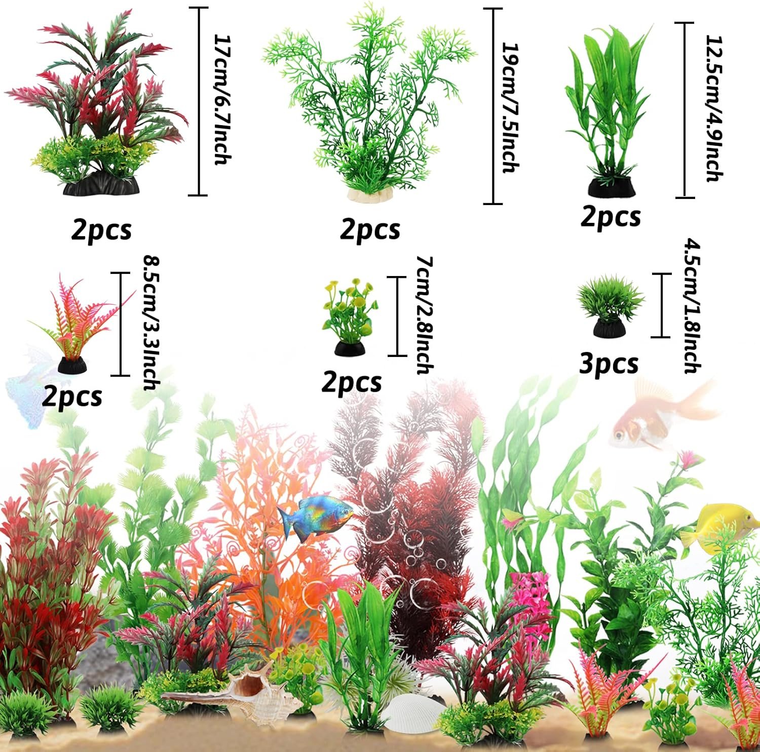 Das Paket beinhaltet: 20 Stück höhenverschiedene künstliche Aquarienpflanzen: verschiedene Höhen 5 bis 30 cm. Dieses Set wäre schön für 7 bis 20 Gallonen und bis zu Aquarien.