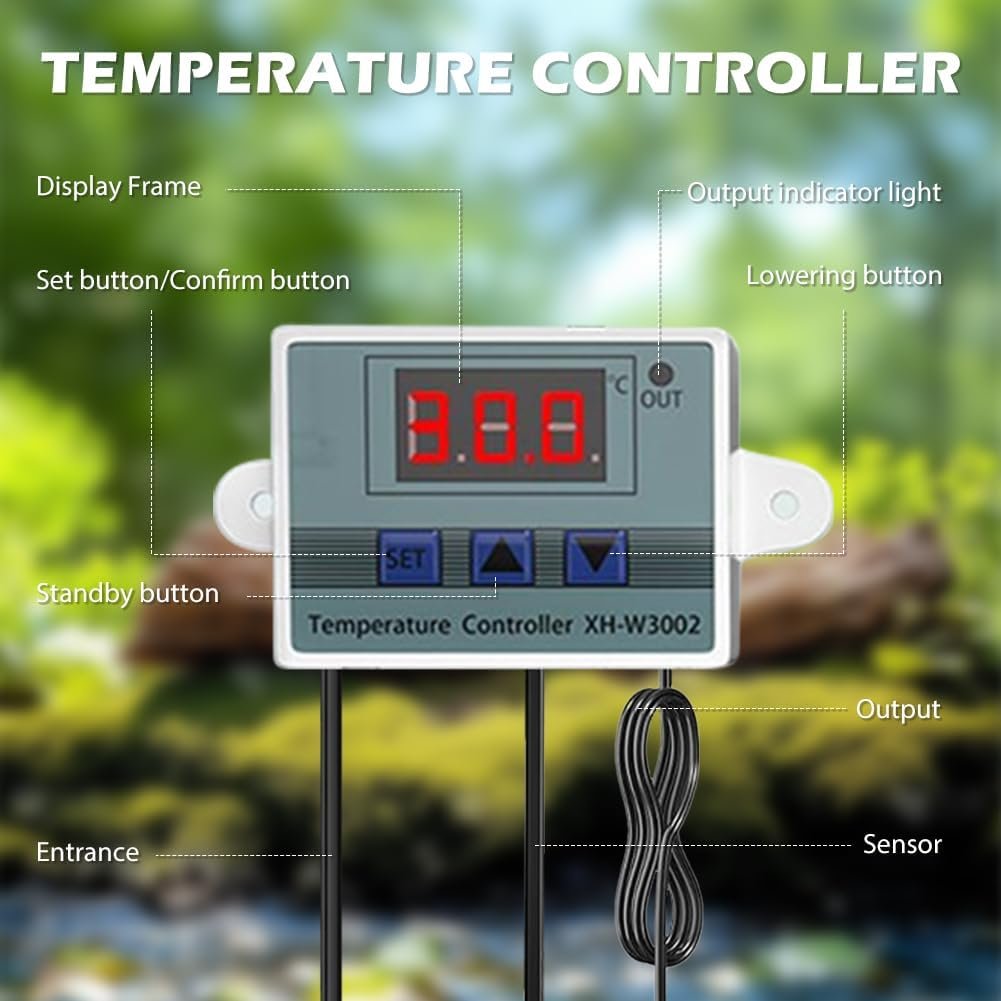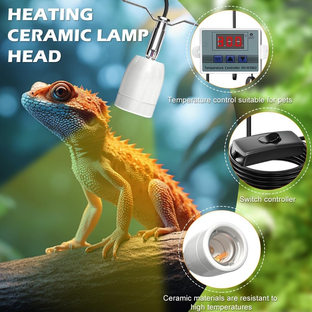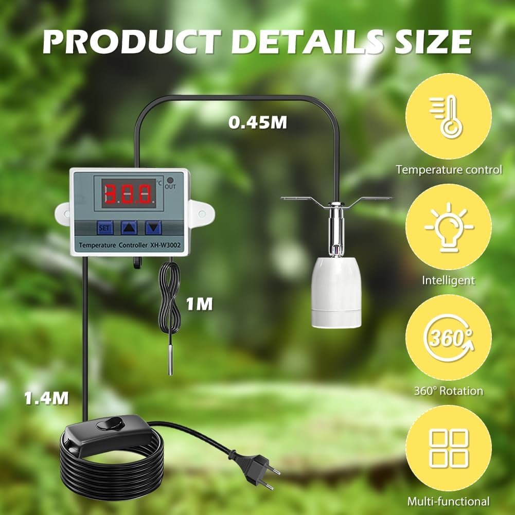Intelligente Temperaturregelung: E27-Reptilienlampenfassung mit intelligenter Temperaturregelung, erkennt die Innentemperatur genau mit einem wasserdichten Metallsensor, einfache Außeneinstellungen ermöglichen Temperaturen von -50 ° bis 120 °, Genauigkeit von bis zu 0,1 °, bieten ein komfortables und sicheres Wohnumfeld für Ihre Reptilien.
