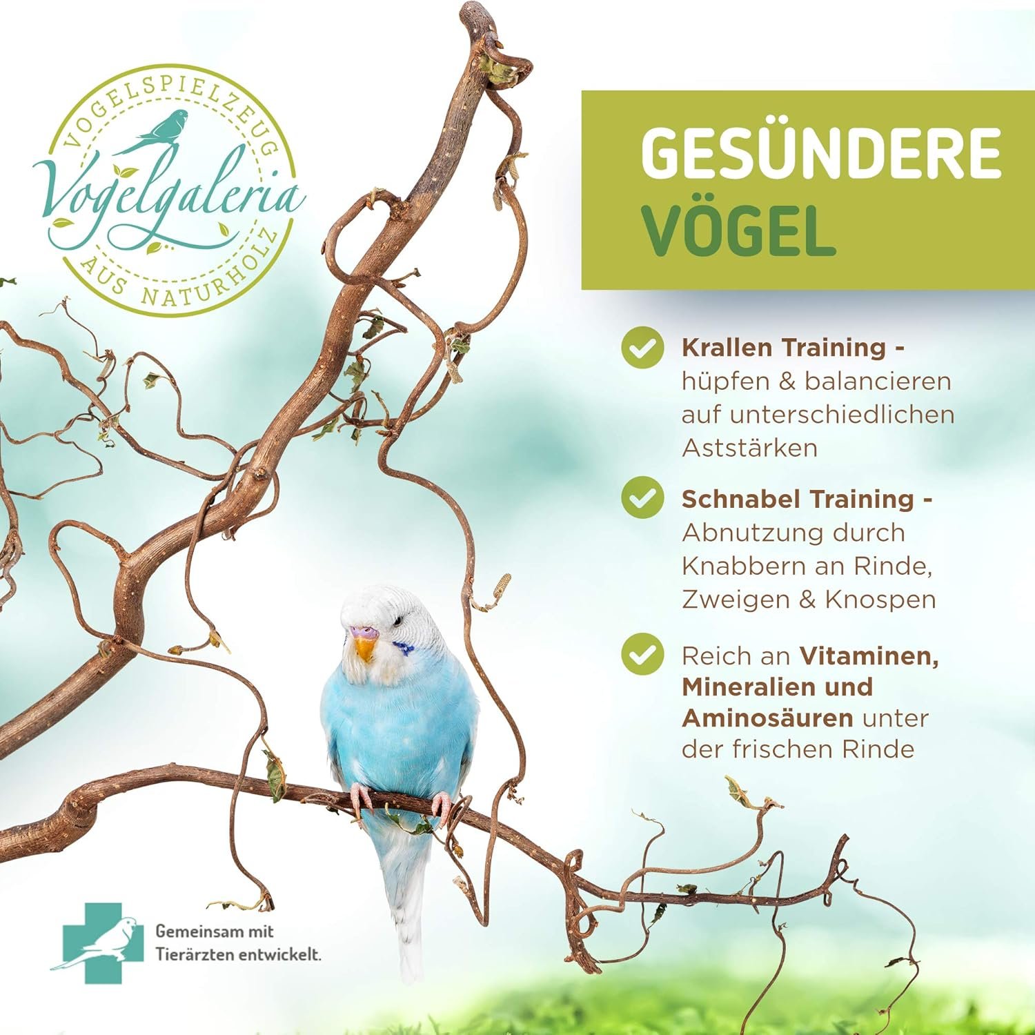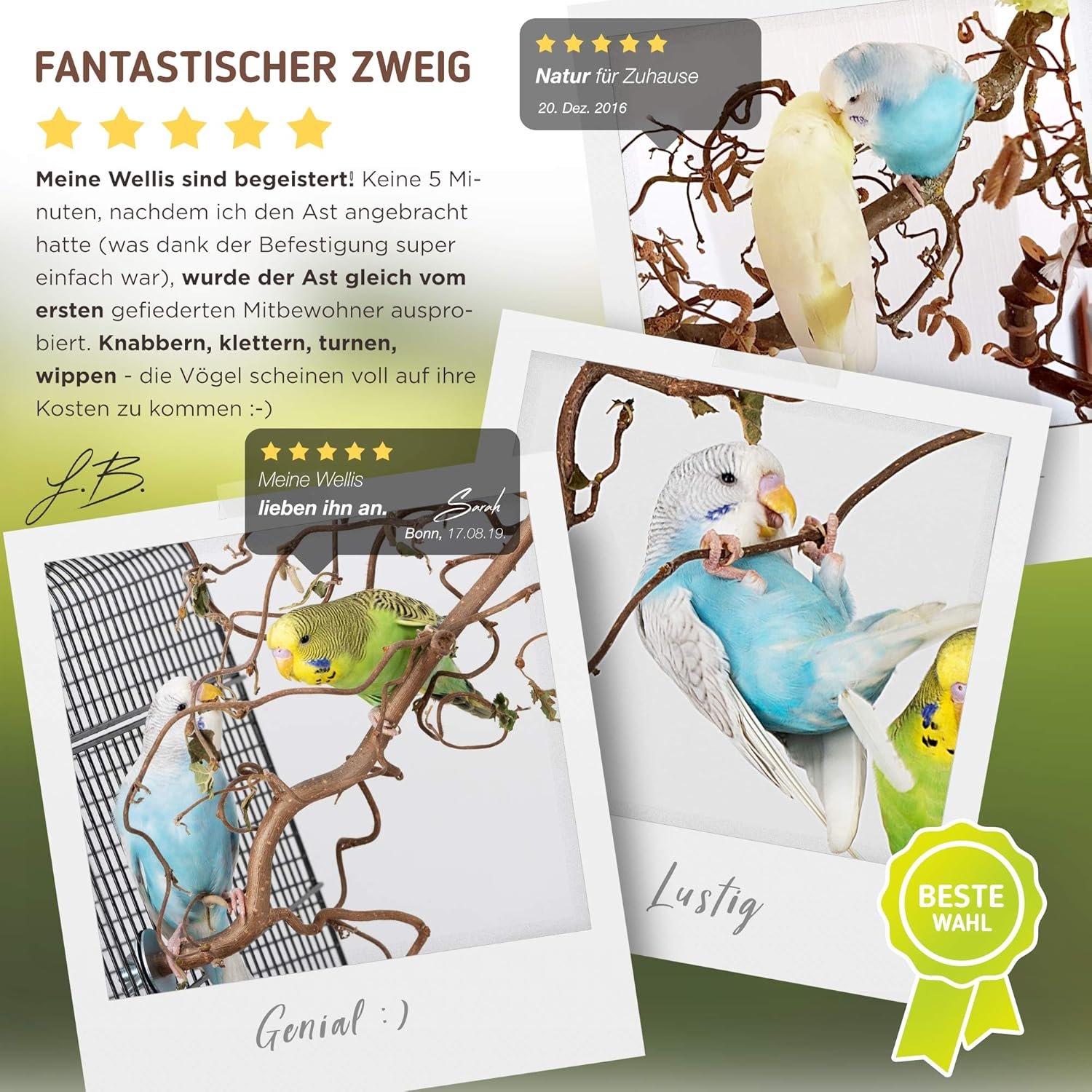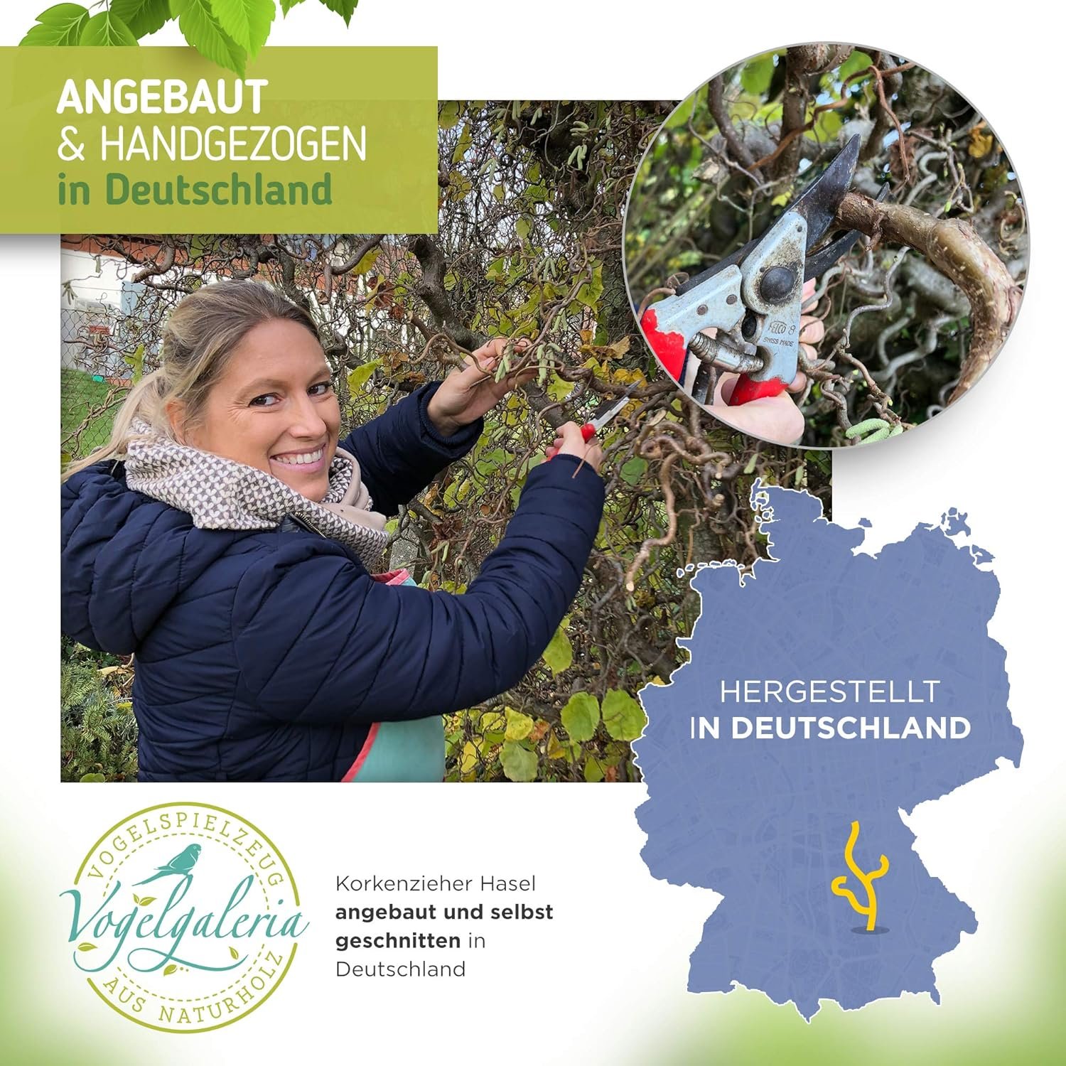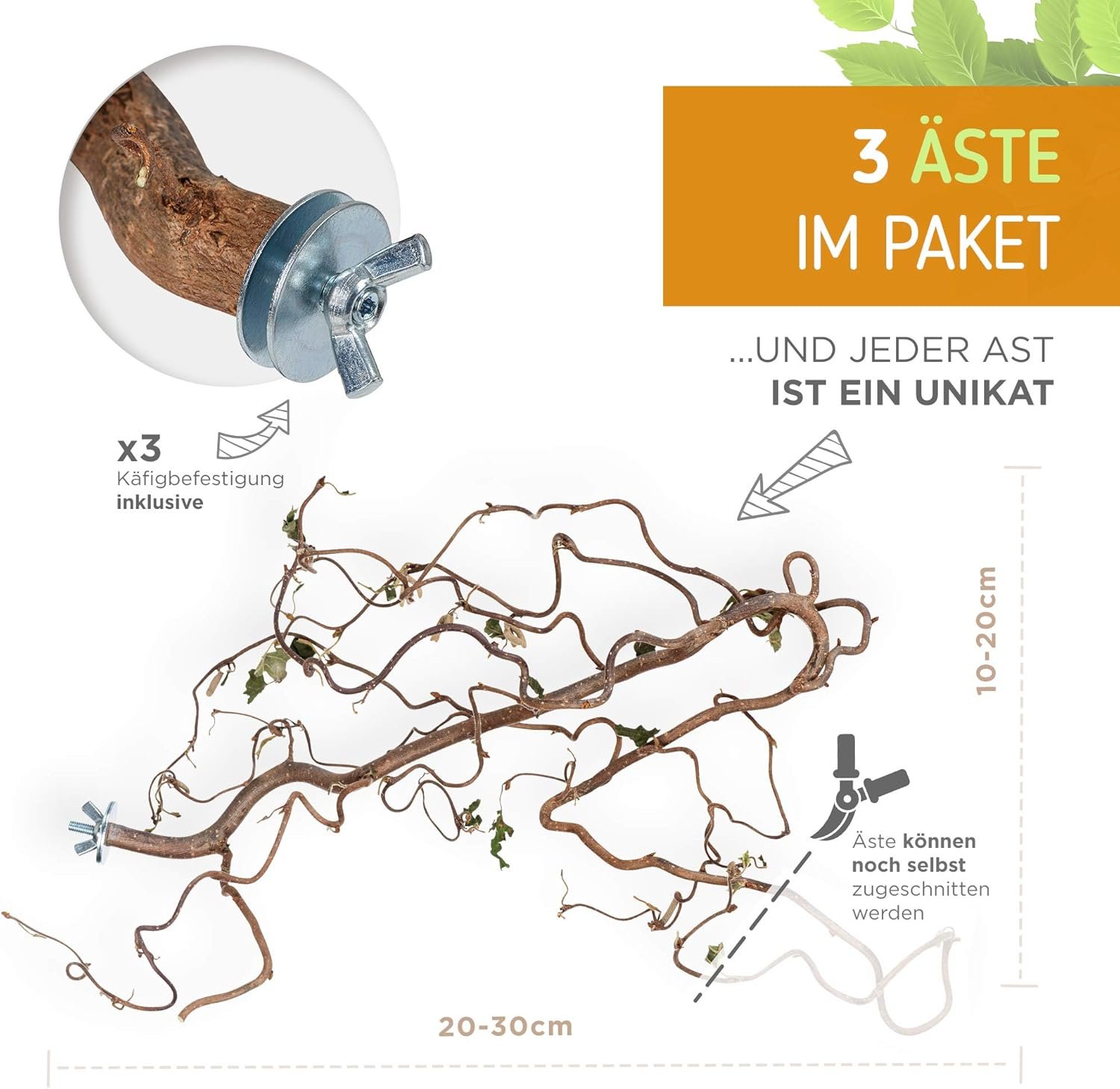 3 unbehandelte, selbstgeschnittene natürliche Korkenzieherzweige aus einer ländlichen Region. Sorgenfreie Schnabelpflege.