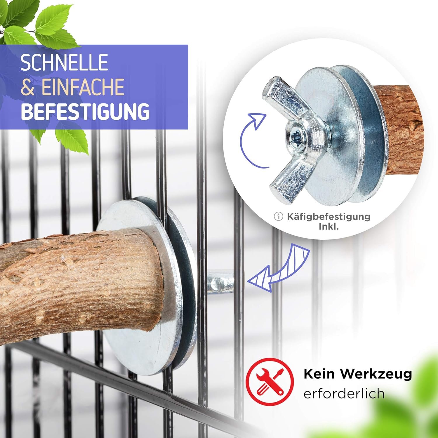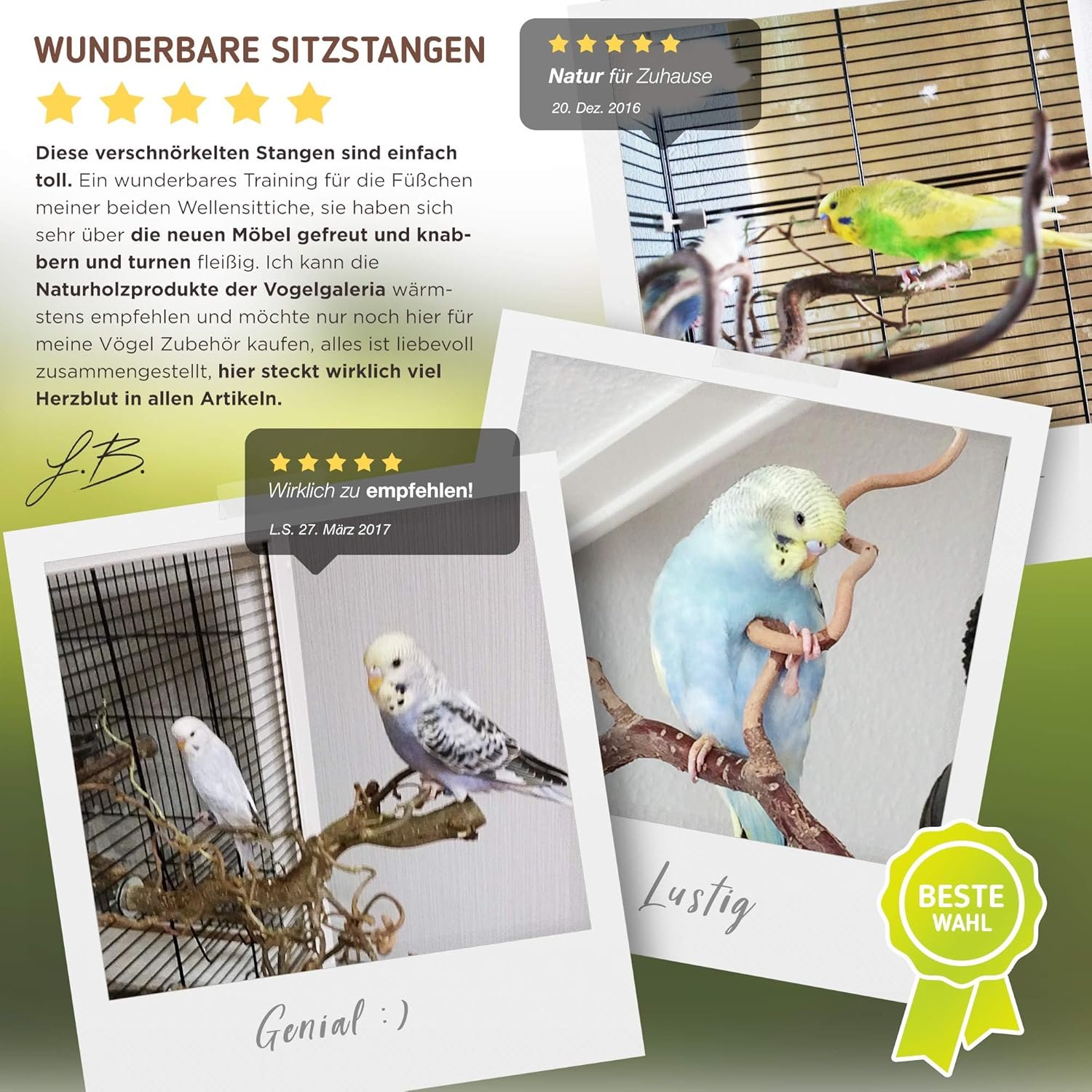 Wichtig: Wir schneiden unser Naturholz selbst und fertigen für Sie in der heimischen Werkstatt und in liebevoller Handarbeit hochwertige Vogelaccessoires an.