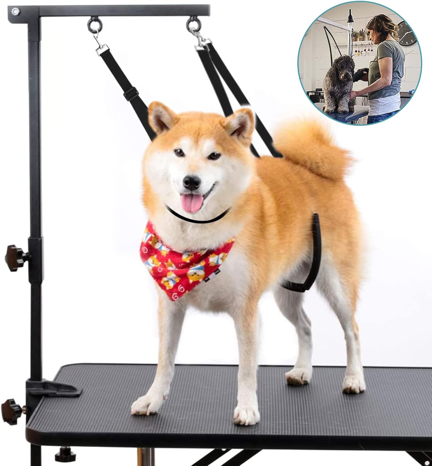 Verstellbares Design: Sie können die Leine an die Größe und Position Ihres Hundes anpassen, und die stabile Bolzenschnalle lässt sich einfach an der Armlehne des Trimmtisches oder der Badewanne befestigen und rutscht nicht so leicht ab.