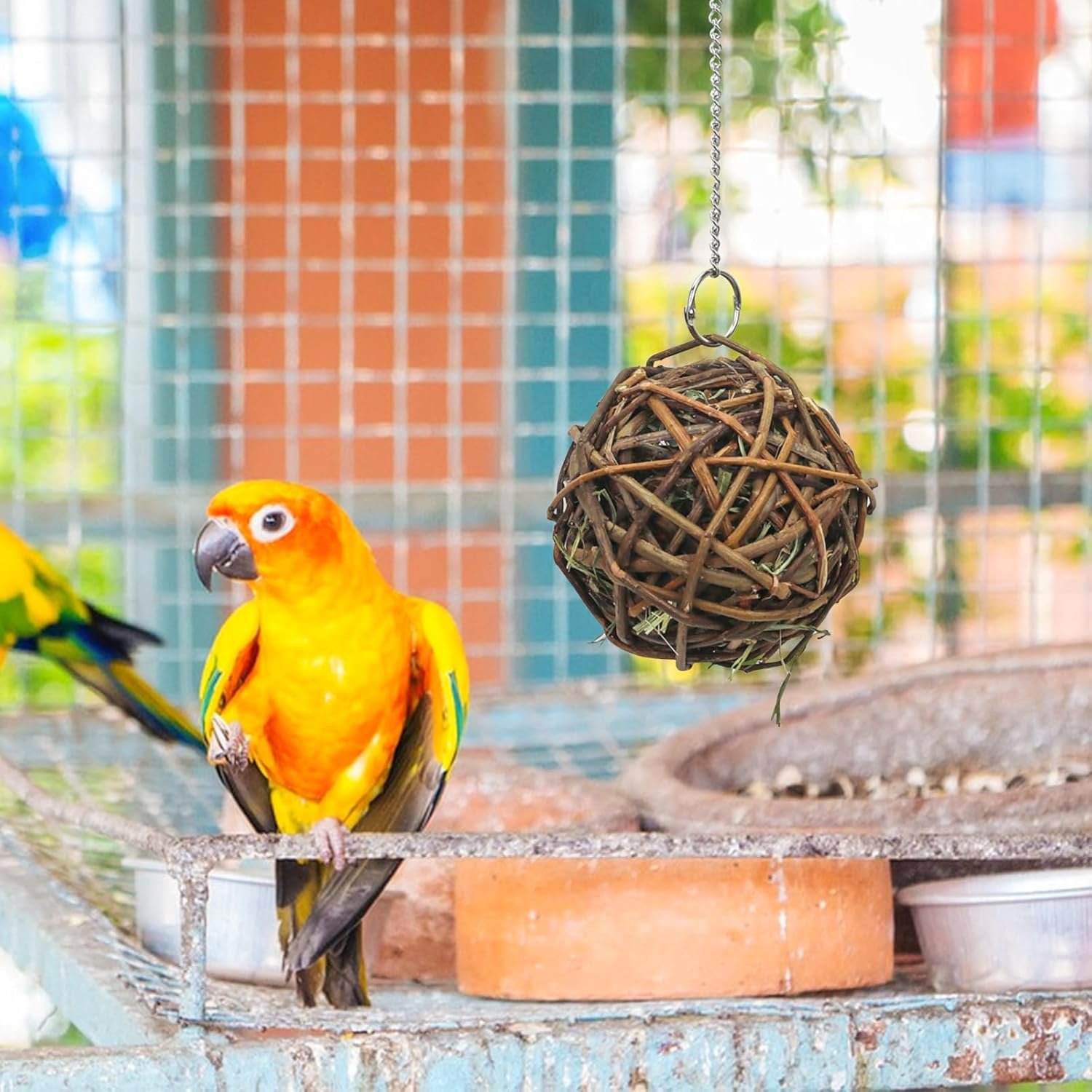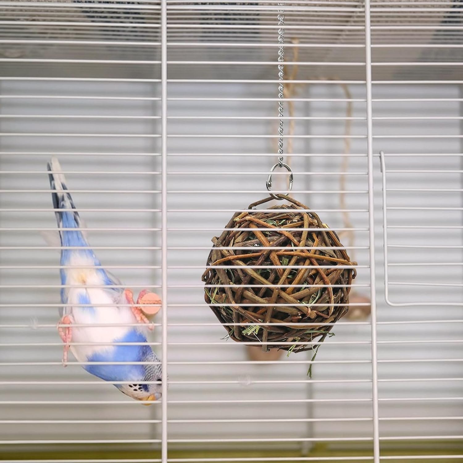 ღ【Handgefertigt】Hergestellt mit traditioneller Handarbeit, wobei der Schwerpunkt auf Produktqualität und Details liegt, um die Qualität und Lebensdauer des Produkts zu gewährleisten. Die Füllung im Inneren des Weidenballs steigert das Interesse des Vogels am Springen, Spielen und Fressen.