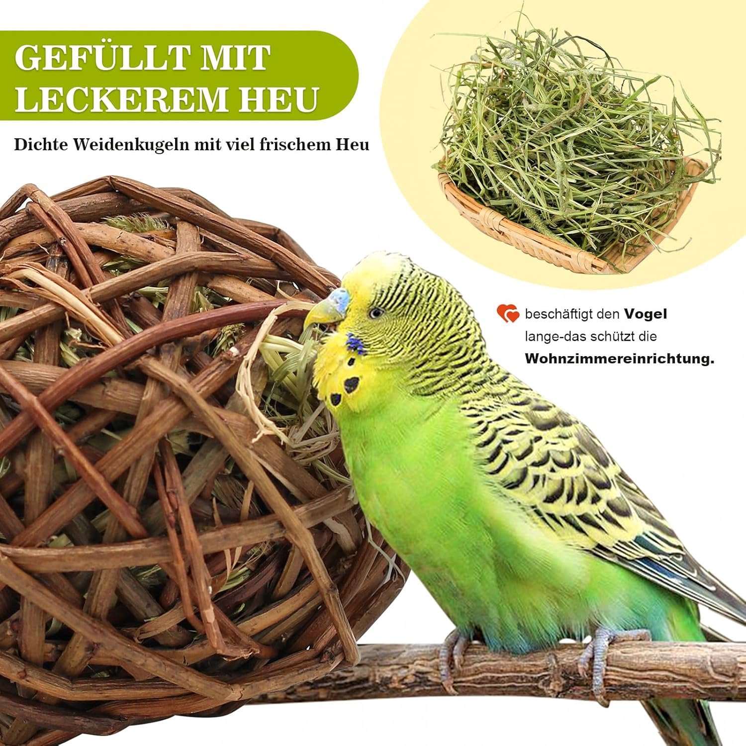 ღ 【Breite Anwendung】: Die Weidenbälle sind für Wellensittiche, Sittiche, Kaninchen, Hamster und andere Kleintiere geeignet. Bei Fragen oder Problemen bitten wir Sie, uns rechtzeitig eine Rückmeldung zu geben. Wünsche Ihnen ein angenehmes Einkaufserlebnis.