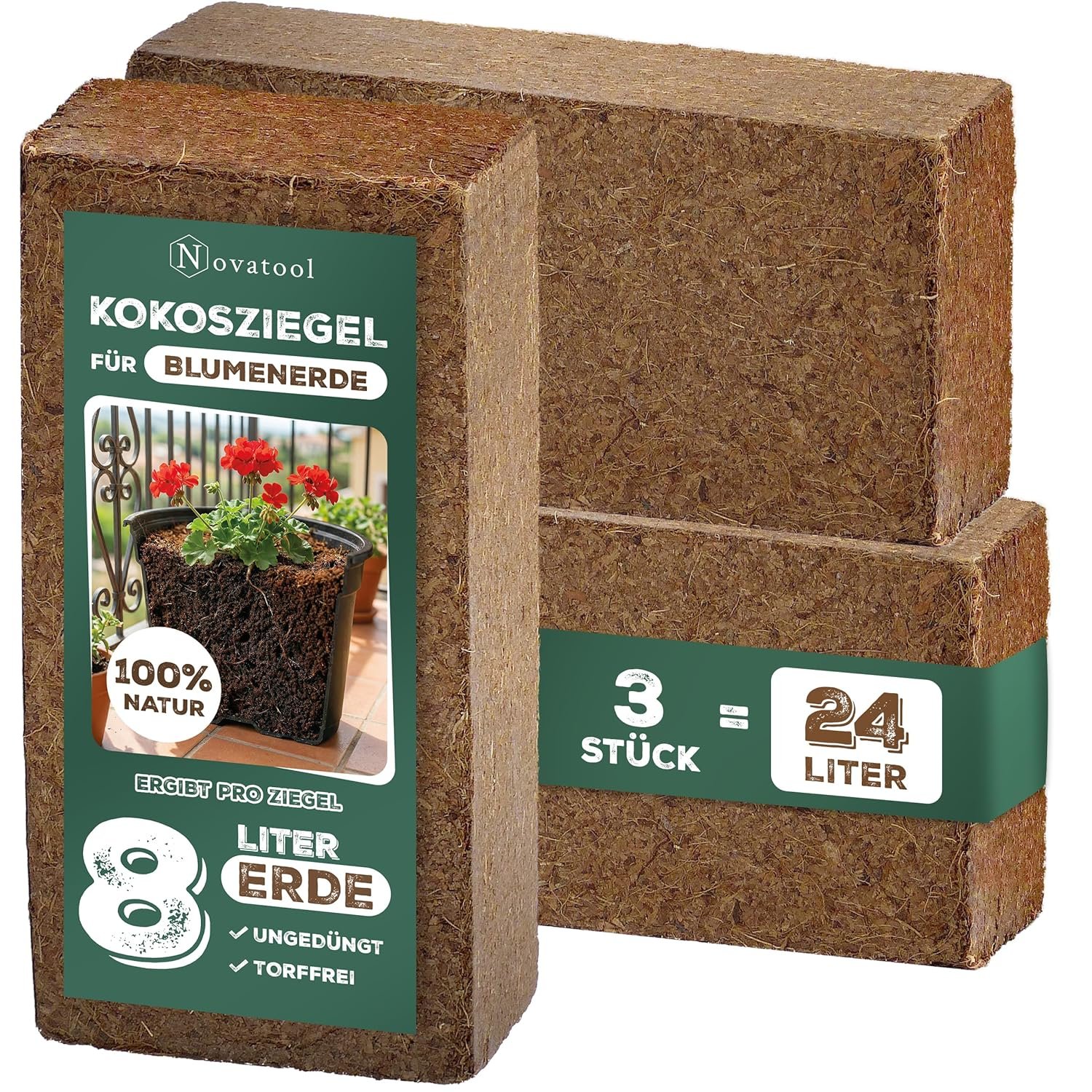 Box contents: you will receive 3 x bricks made of natural coconut fibre from Novatool in the colour brown with approx. 650 g reptile bedding.