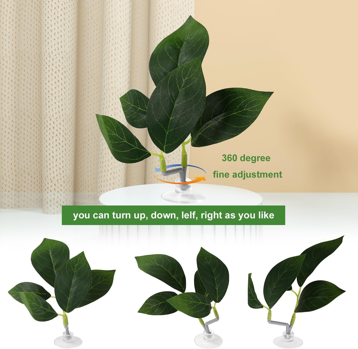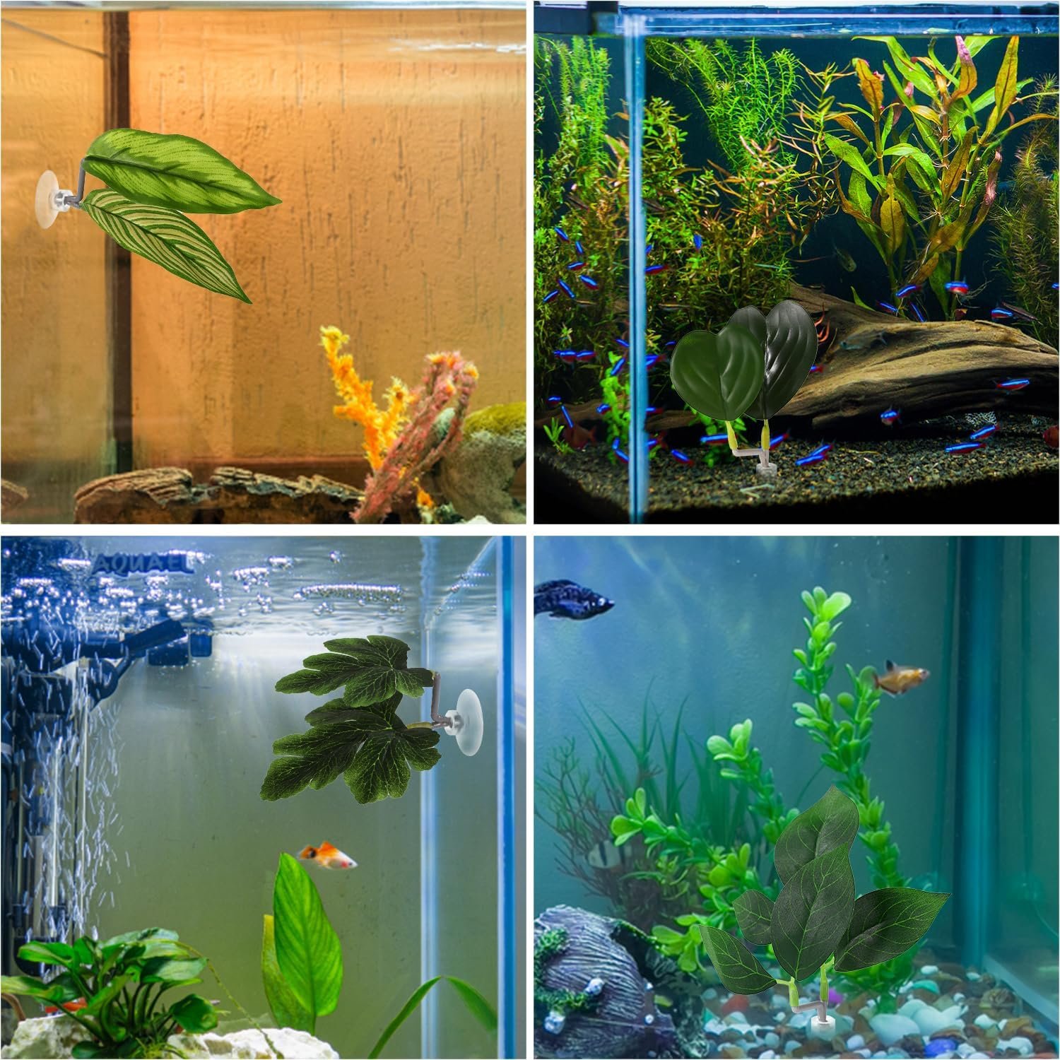 Verstellbares Design: Mit dem verstellbaren Design können Sie den Blättern unterschiedliche visuelle Effekte verleihen, indem Sie den Winkel der Halter anpassen und so den natürlichen Lebensraum Ihrer geliebten Kampffische weitestgehend simulieren.