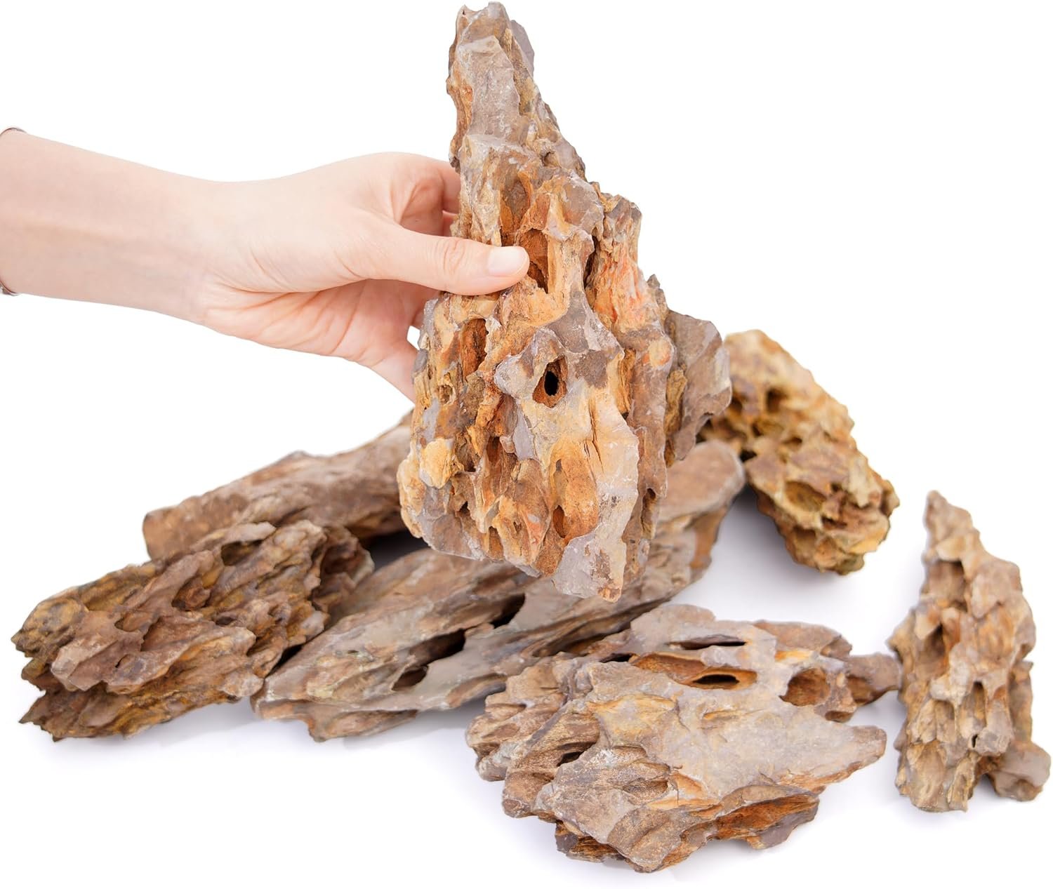EINFACHE ANWENDUNG UND PFLEGE: Unsere natürlichen Drachensteine für Aquarien sind leicht zu reinigen. Vor Gebrauch einfach abspülen und einzigartige Landschaftseffekte erzielen. Ihre Langlebigkeit gewährleistet eine langfristige Nutzung ohne Verlust des Aussehens. Die Steine bieten Versteckmöglichkeiten für Fische und Ankerpunkte für Pflanzen, während die poröse Struktur das Wachstum nützlicher Bakterien fördert und so eine wirksame biologische Filterung unterstützt.