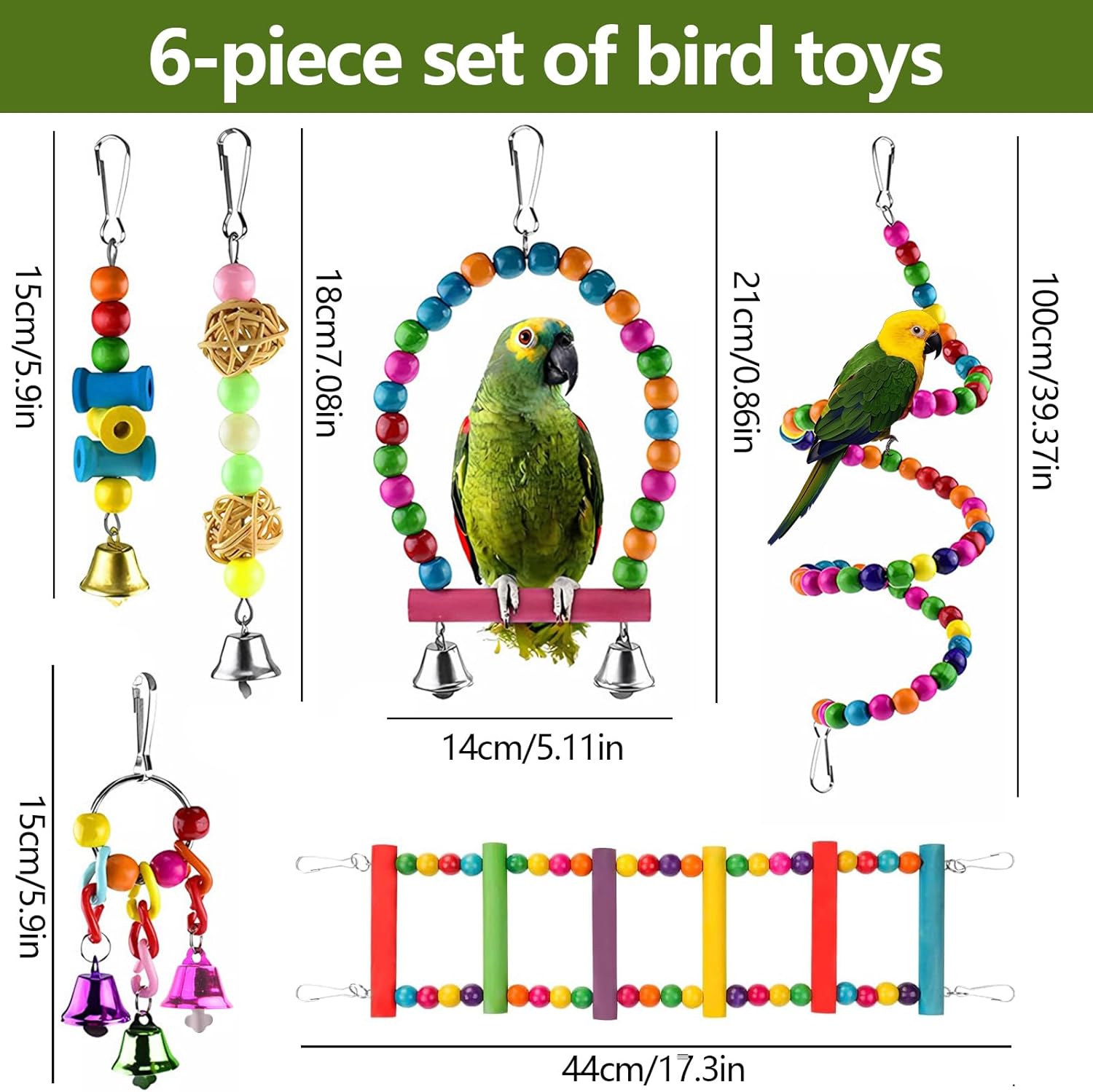 6 Stück Vogelspielzeug, Vogelkäfigzubehör aus Holz, Papageienspielzeug.