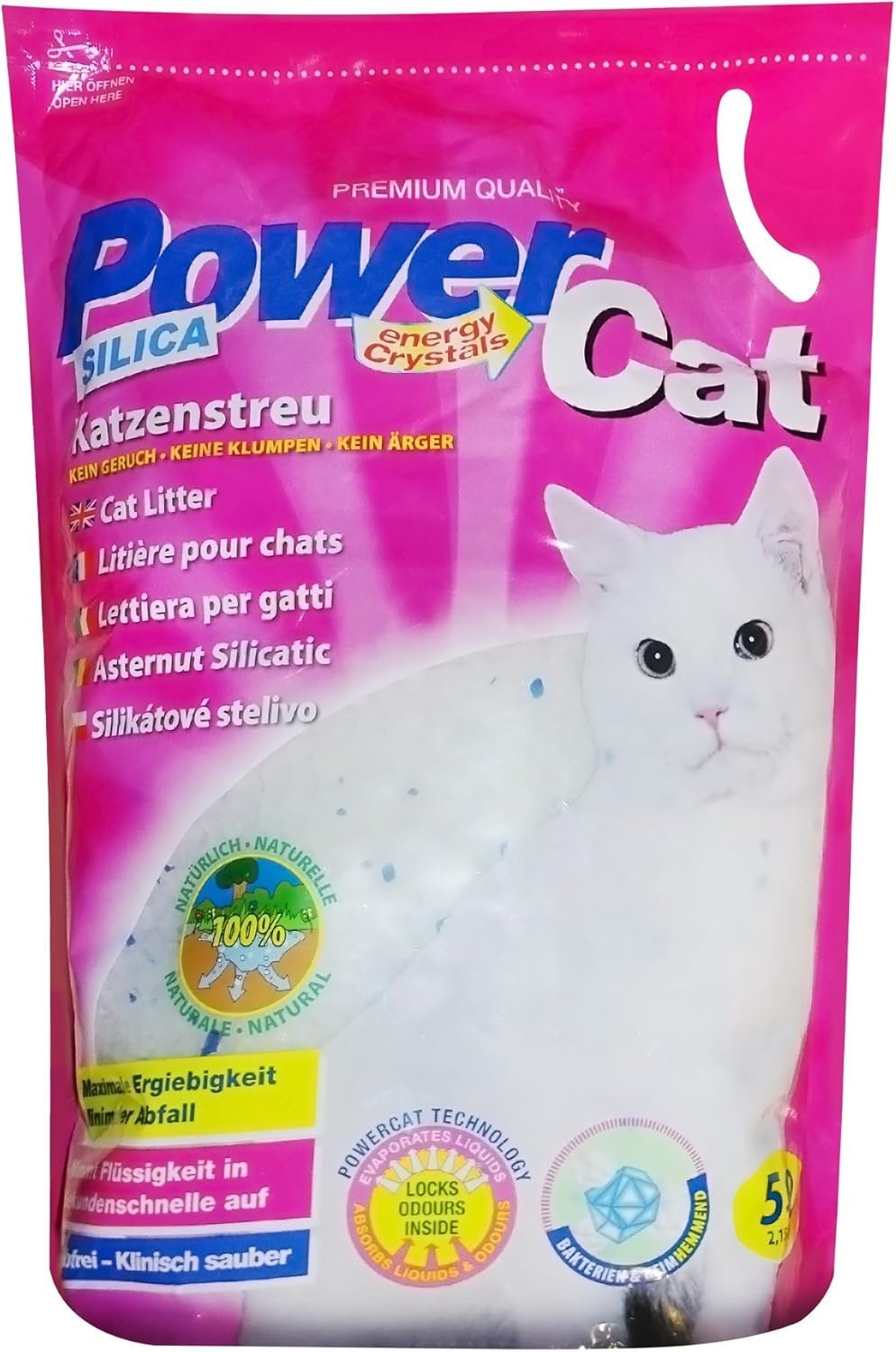 PowerCat Silikat ist eine nicht klumpende Katzenstreu und zeichnet sich durch maximale Ergiebigkeit und Geruchsbindung aus. Es besteht aus Quarzsand, der zu einem vielporigen und saugfähigen Granulat verarbeitet wird. Katzen haben einen hohen Anspruch an Hygiene und Sauberkeit. PowerCat Silikat-Katzenstreu erfüllt die hohen Ansprüche einer Katze an Sauberkeit und Hygiene, da es speziell für die Bedürfnisse Ihrer Katze entwickelt wurde. Die Katzentoilette bleibt spürbar sauber. Das Silikatgranulat nimmt die Flüssigkeit in Sekundenschnelle auf und beugt Geruchsbildung wirksam vor.