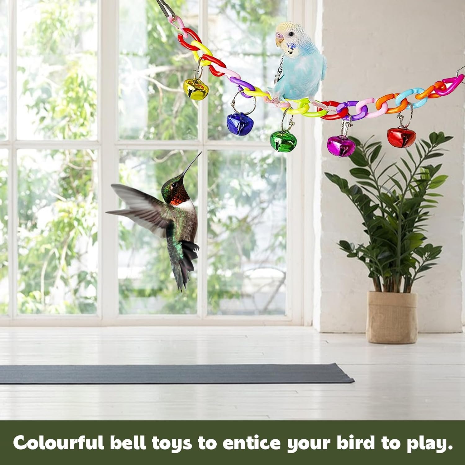 Spaß und Training: Die farbenfrohen Papageienspielzeuge und Glocken sind für Vögel leicht attraktiv, sodass sie ihre Muskeln durch Schaukeln, Spielen und Klettern trainieren und dabei Spaß haben und ihre körperliche und geistige Gesundheit erhalten können.