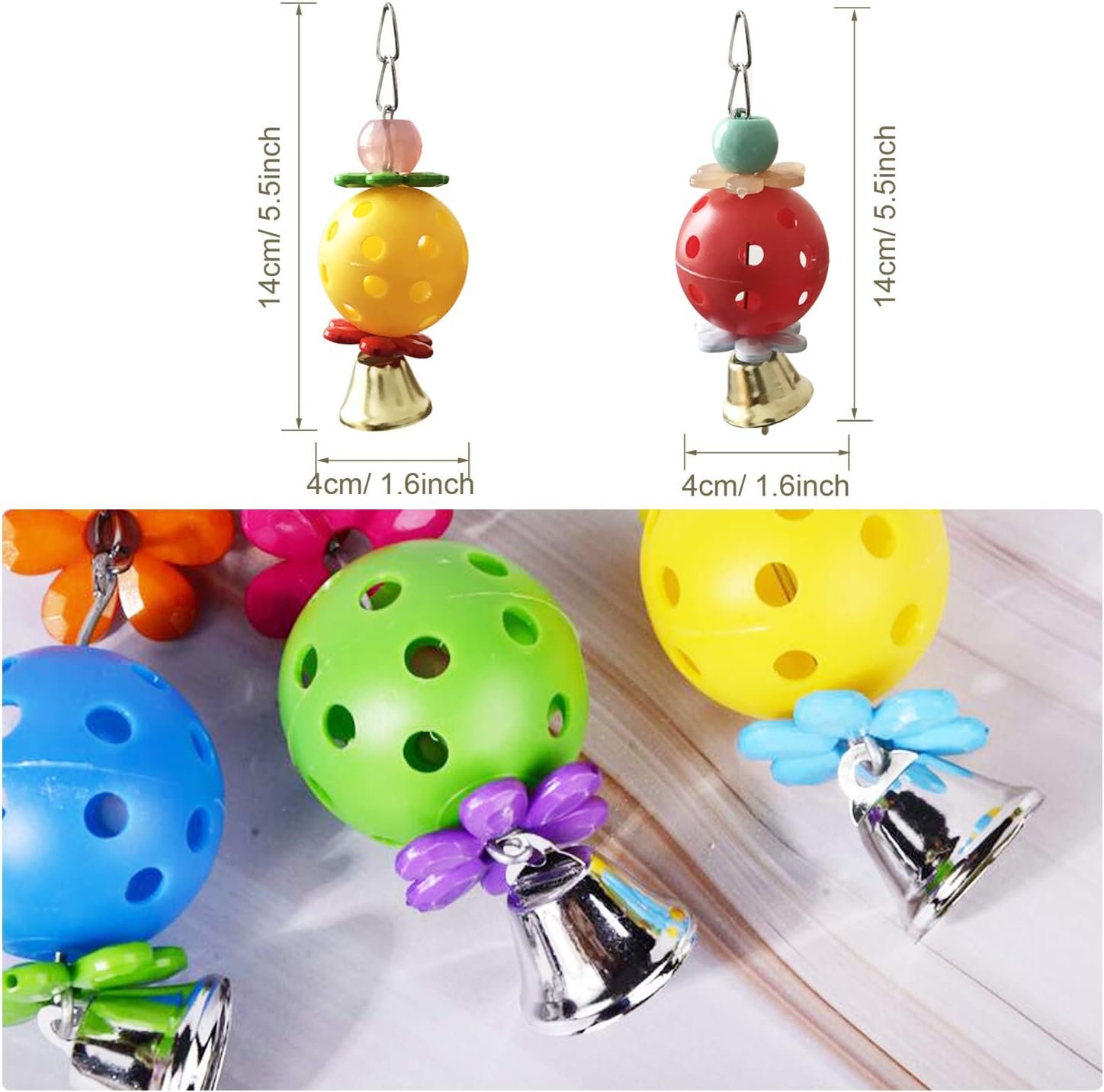 Spielzeug in leuchtenden Farben: 3er-Pack Schaukeln zum Kauen, hängende Papageienstangen, 2 Stück Hängeglocken und 2 Stück Fußball. Heimvögel mögen leuchtende Farben, das Schaukelkäfigspielzeug ist farbenfroh und schön, die Glocke und das Kauspielzeug locken Ihre Vögel zum Spielen und Kauen.