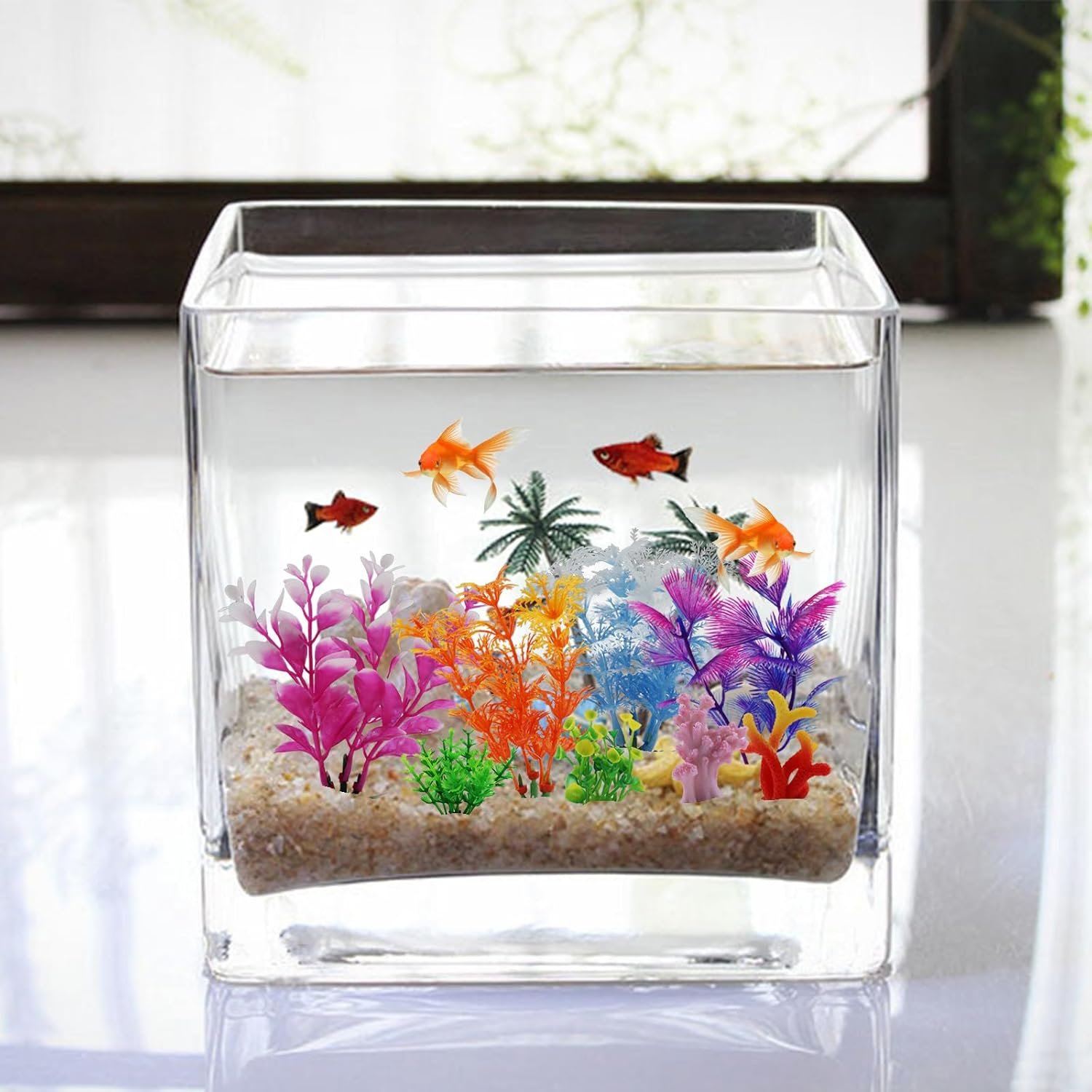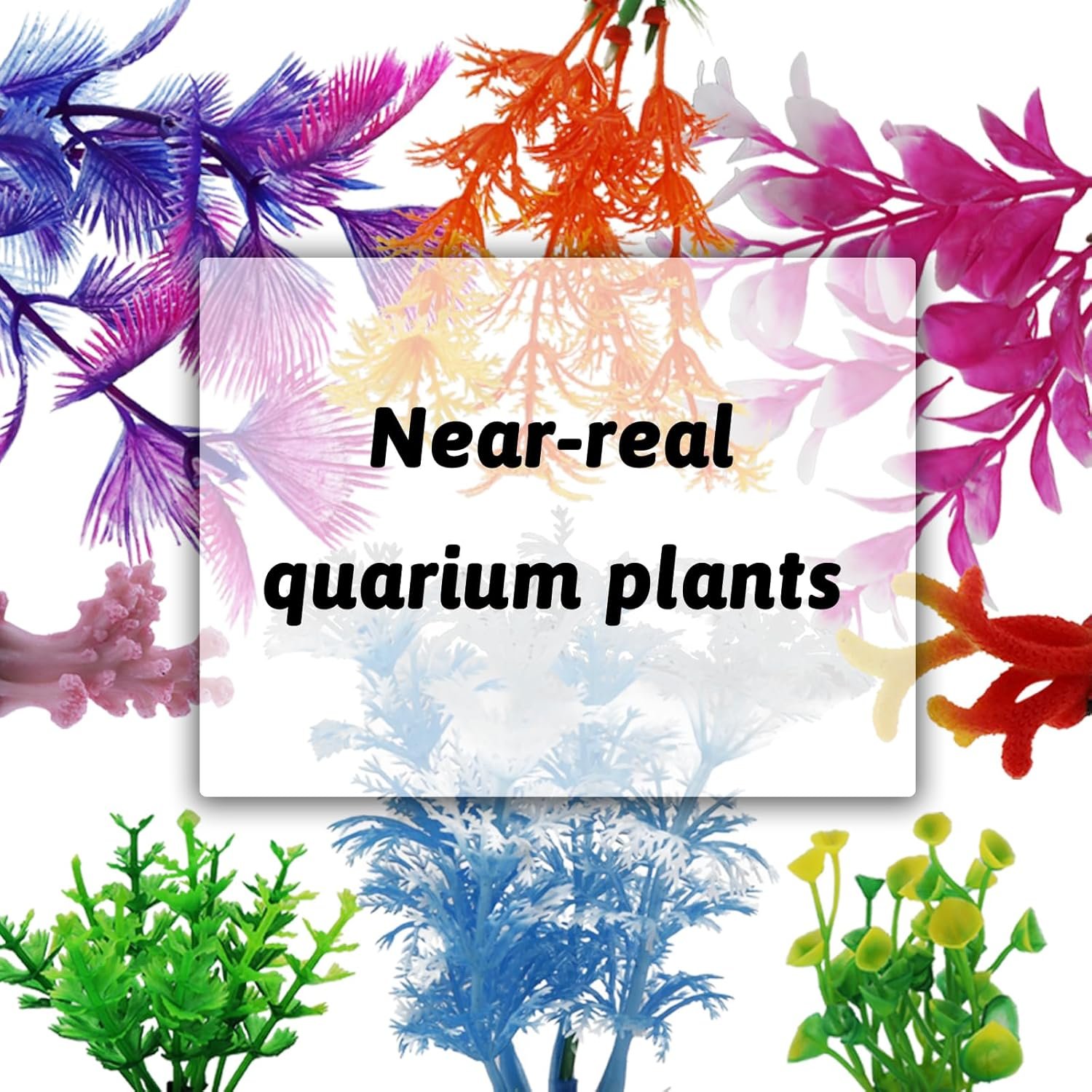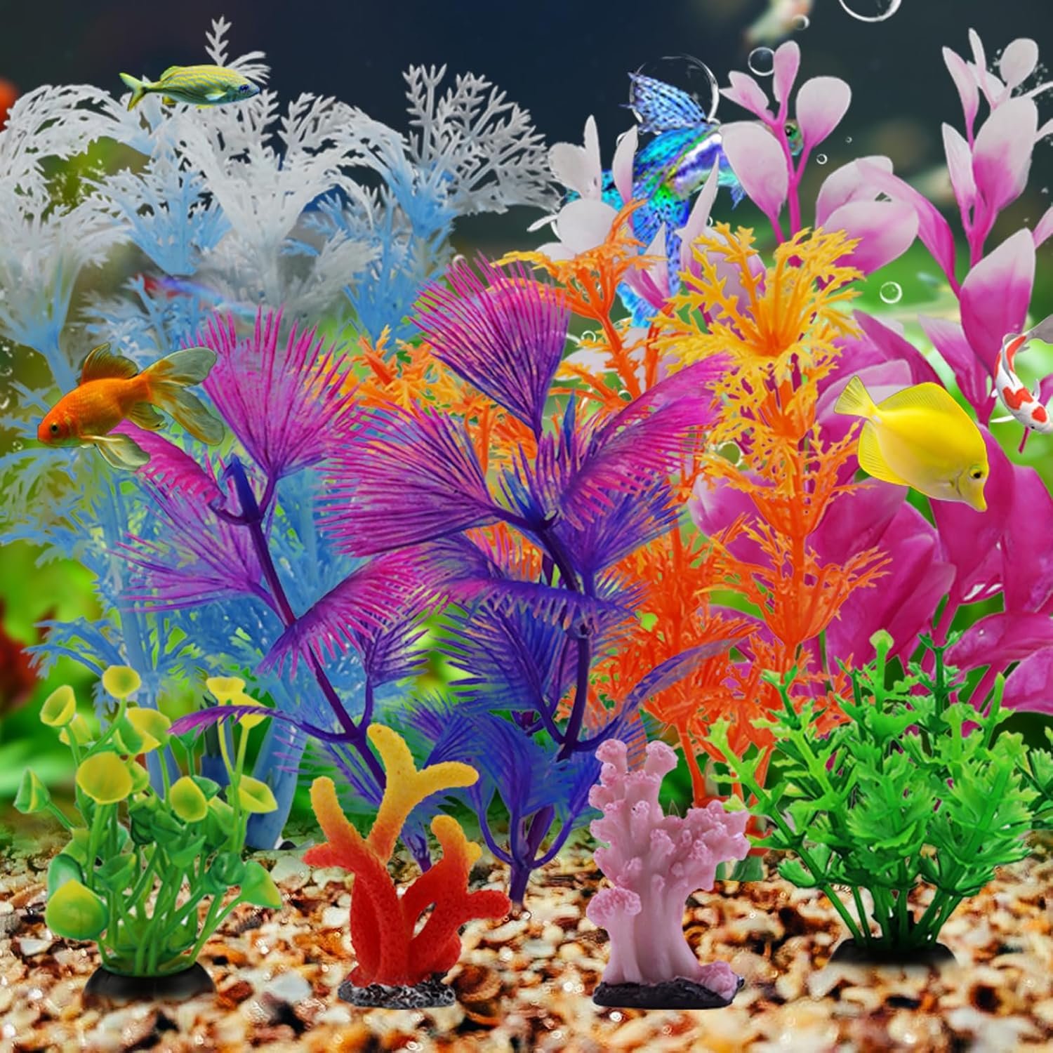 Das Aquarium-Zubehörpaket beinhaltet: 2 Stück Kunstharzkorallen-Aquariumdekoration und 6 Stück bunte künstliche Aquariumpflanzen. (Verschiedene Höhen 5 bis 12,5 cm)