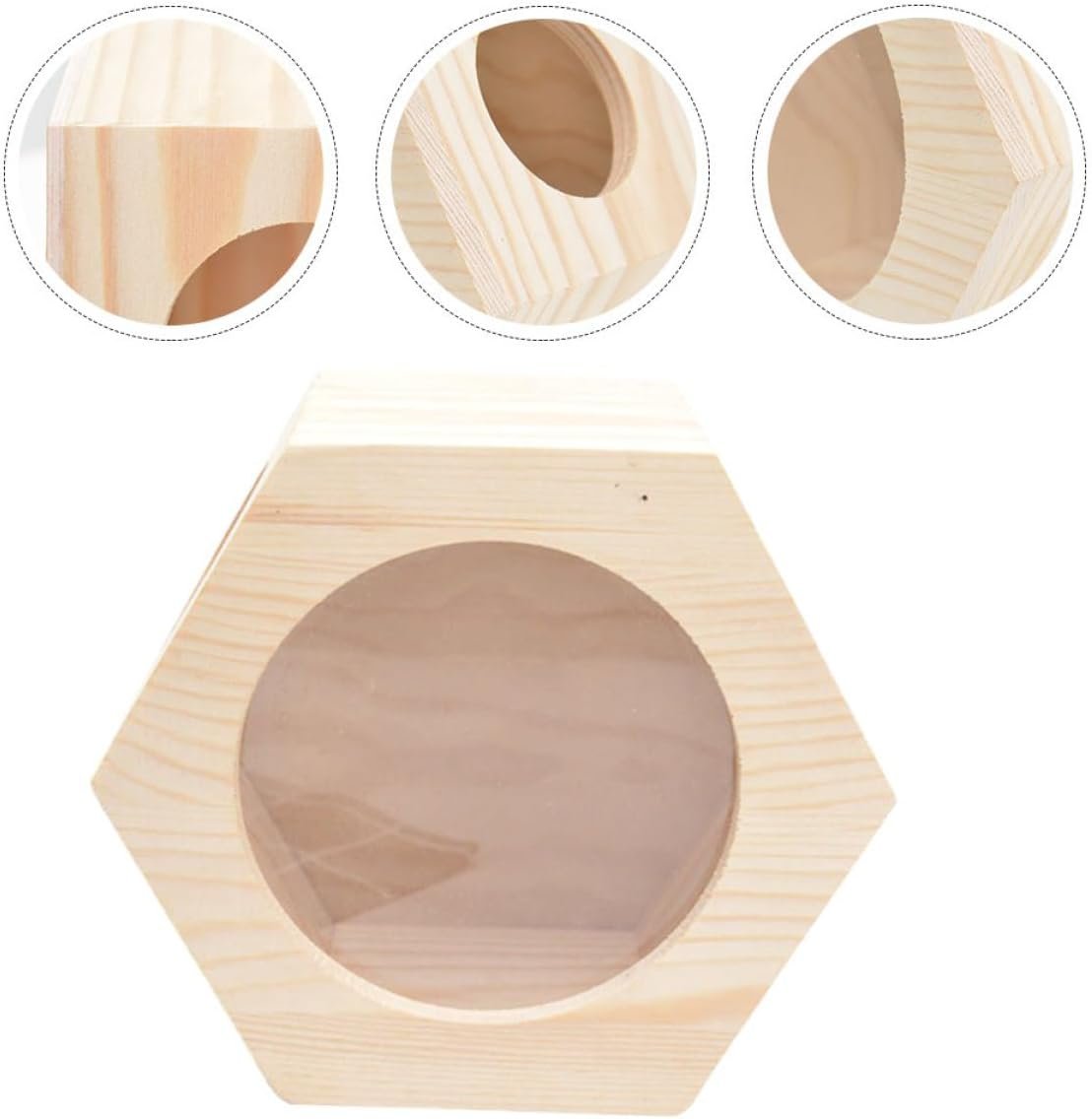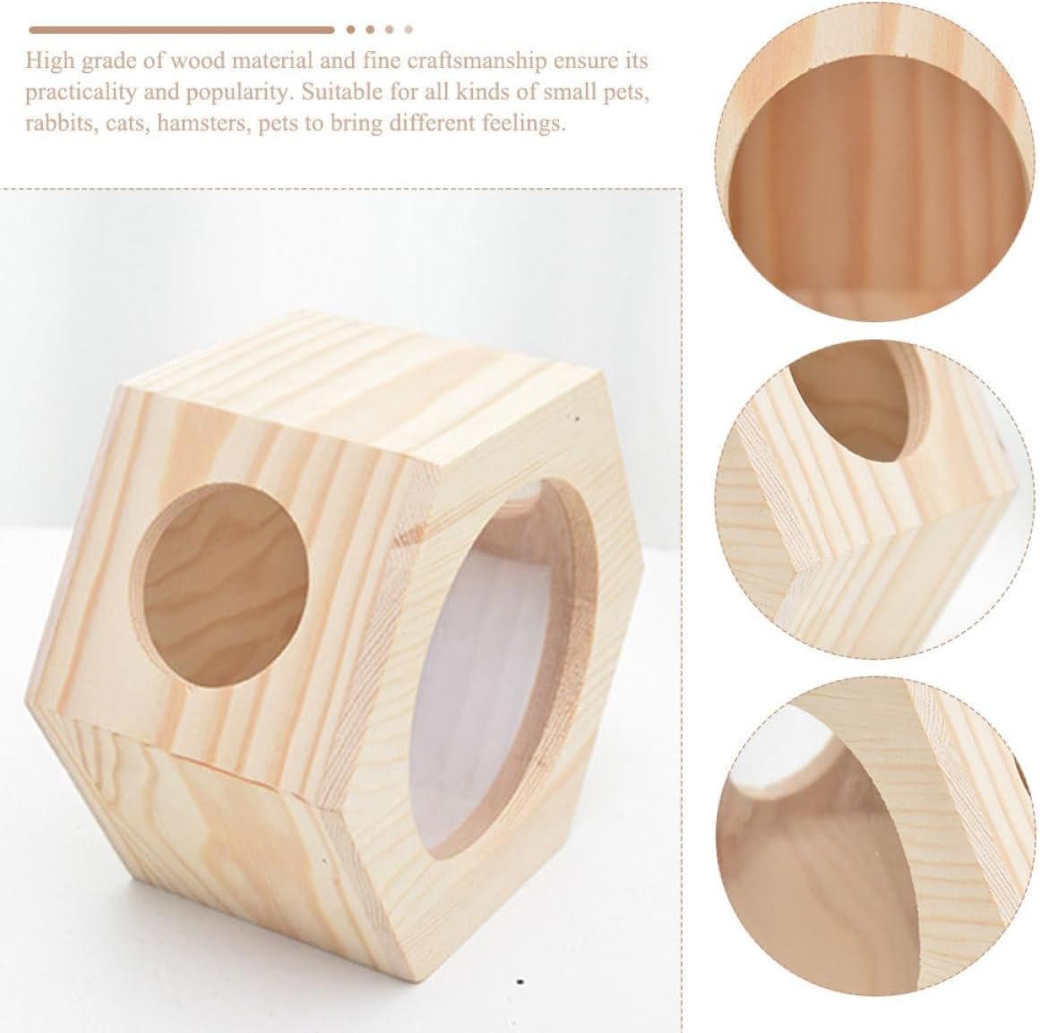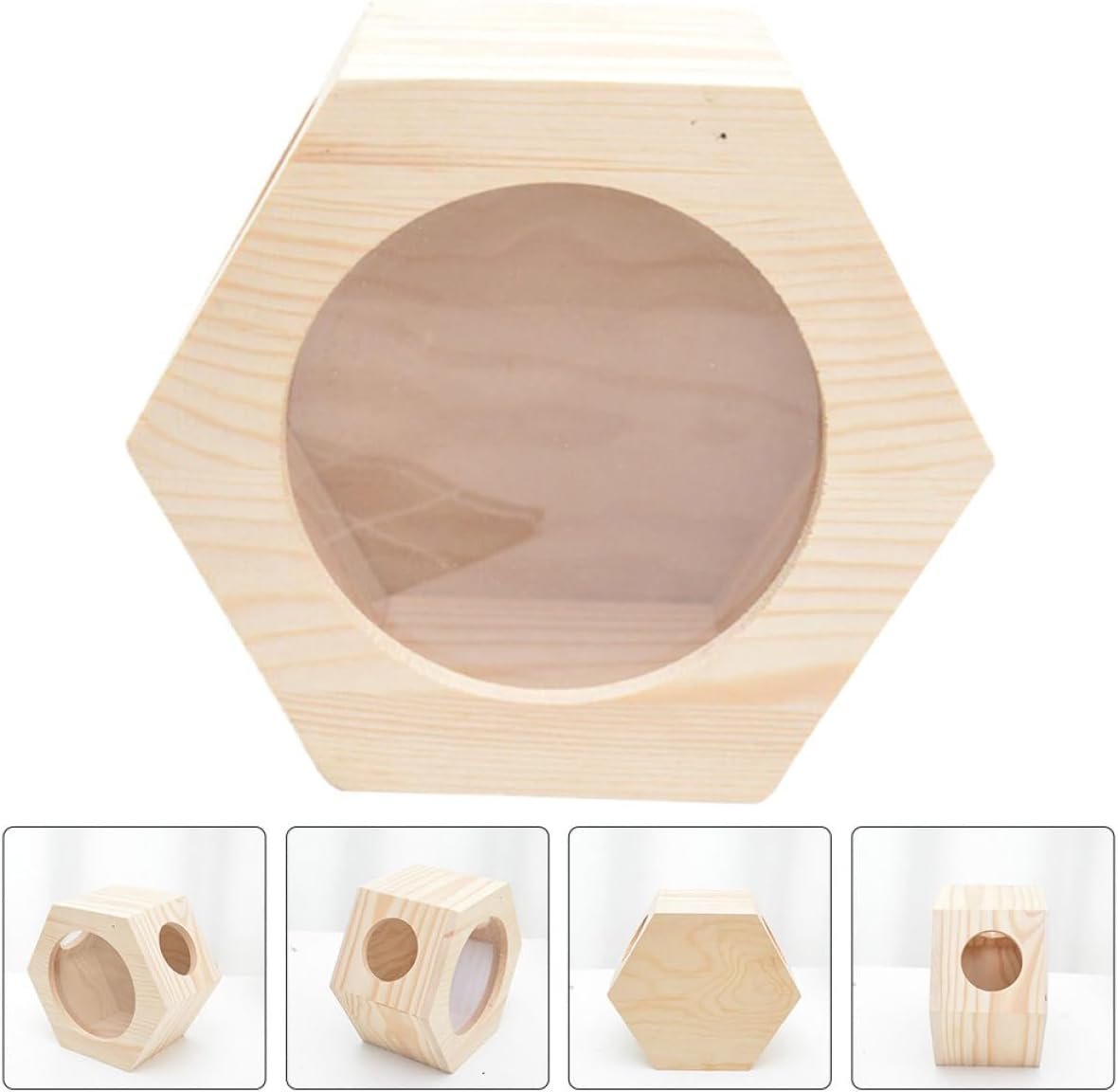 Das Hamsterhaus aus Holz unterscheidet sich von anderen Geschäften durch das Material, das für das Versteck der Tiere verwendet wird. Dieses dreidimensionale, sechseckige Hamsterhaus besteht aus einer Kombination von Kiefernholz und transparentem Acrylglas.