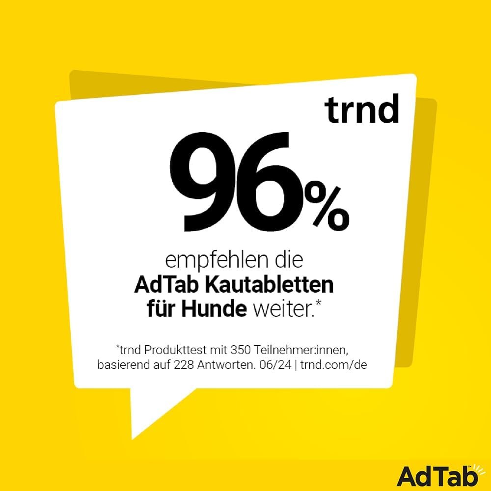 AdTab Kautablette: Da wir unsere Haustiere über alles lieben, ist ein wirksamer Parasitenschutz ein Muss. Mit AdTab ist der Kampf gegen Zecken und Flöhe ganz einfach. Man muss einfach lieben. Leicht zu schützen.