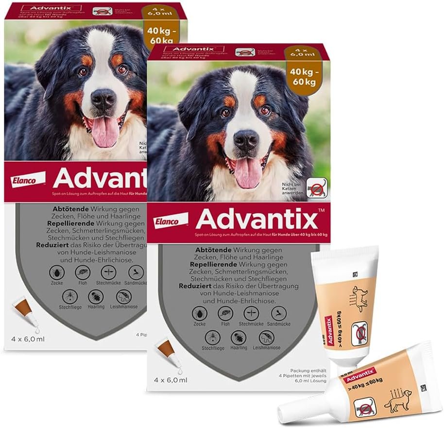 Die Repellent-Wirkung: Die meisten Parasiten wie Zecken, Sandmücken und Stechmücken werden durch den Kontakt mit der behandelten Haut und dem Fell Ihres Hundes abgewehrt. Sie kommen nicht einmal zum Blutsaugen. Das Risiko einer Übertragung gefährlicher Krankheitserreger (z. B. bei Leishmaniose, Borreliose, Babesiose) wird dadurch von Anfang an verringert. Der Tötungseffekt: Flöhe werden bei Haut- oder Fellkontakt schnell und zuverlässig abgetötet. Dies gilt auch für Haarläuse. Sorgenfrei auf Reisen – der Schutz, der in den Koffer gehört. Gerade im Urlaub ist ein zuverlässiger Zeckenschutz und Flohschutz für Ihren Hund unverzichtbar. Besonders in südlichen Regionen ist Ihr Hund Risiken wie Sandmückenstichen ausgesetzt. Mit dem Abwehrschutz von Advantix können Sie die schönste Zeit des Jahres unbeschwert genießen.