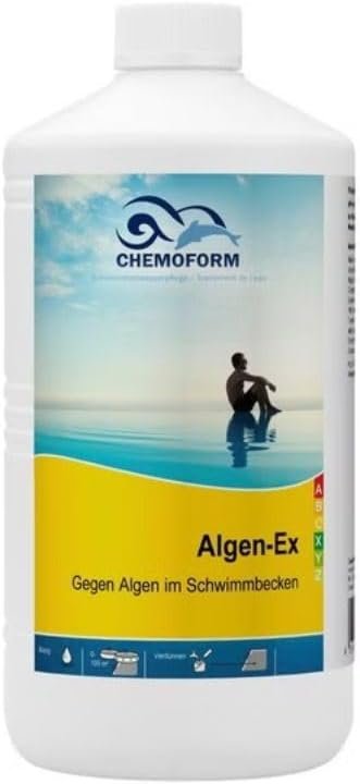 Gießen Sie das Wasser immer langsam am Beckenrand entlang ins Wasser. Starker Badebetrieb, hohe Temperaturen und Regen können eine höhere Dosierung erforderlich machen. Verwenden Sie Algae Ex nicht in Fischteichen. Algae Ex im Eimer mit Wasser verdünnen. Anschließend langsam am Beckenrand entlang ins Wasser gießen! Niemals mit anderen Chemikalien mischen!