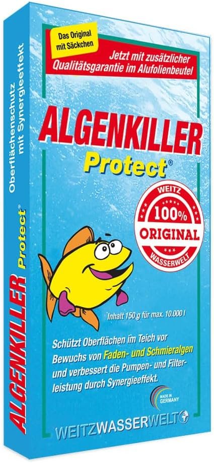 Lieferumfang: 150 g Algenkiller Protect (inkl. 1 x Spezial-Stoffbeutel) – geeignet für bis zu 10.000 Liter Gartenteich, Schwimmteich, Fischteich oder Koiteich.