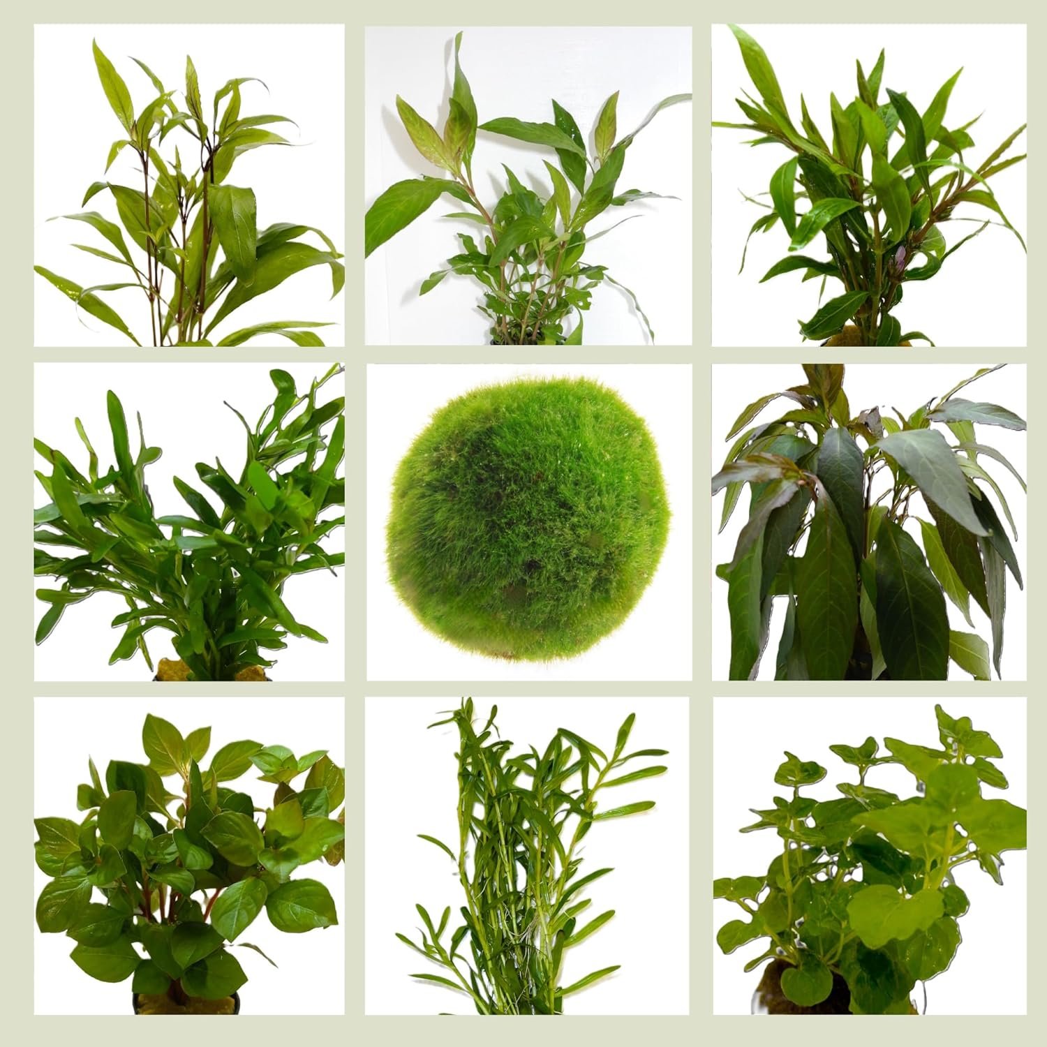 Lieferumfang: Je nach Verfügbarkeit besteht das Set aus einem wunderschönen Moosball und 5 Arten schnell wachsender Aquarienpflanzen wie: