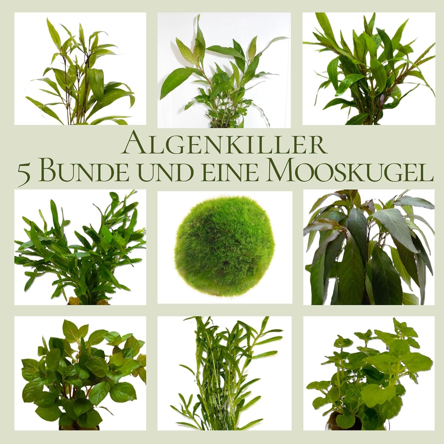 Das Anti-Algen-Set besteht aus einer sorgfältigen Auswahl von 5 verschiedenen schnell wachsenden und dennoch dekorativen Aquarienpflanzen sowie einem Moosball. Diese Pflanzenkombination sorgt nicht nur für einen wirksamen Algenschutz, sondern bereichert auch die Optik Ihres Aquariums.