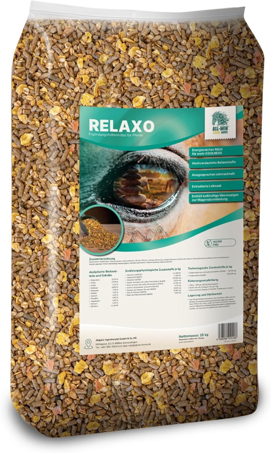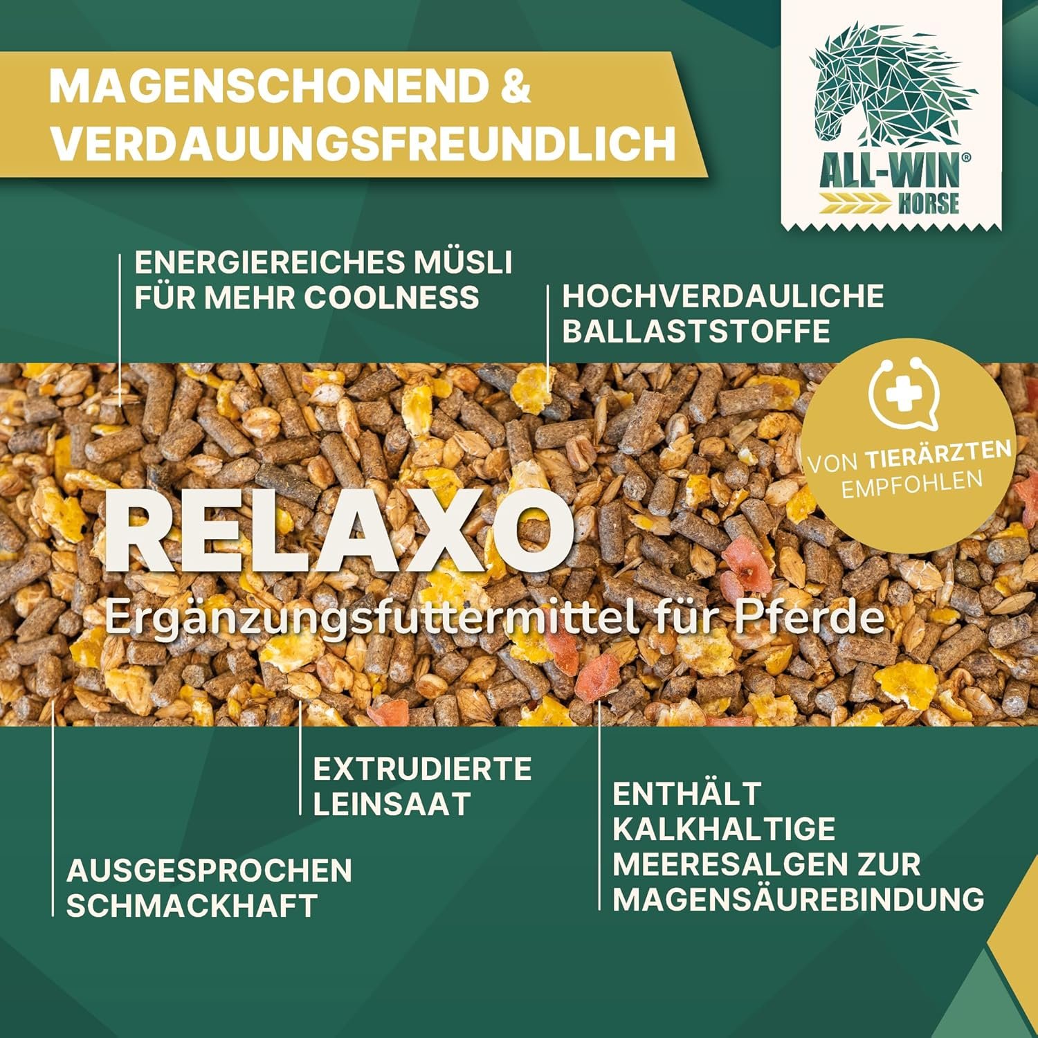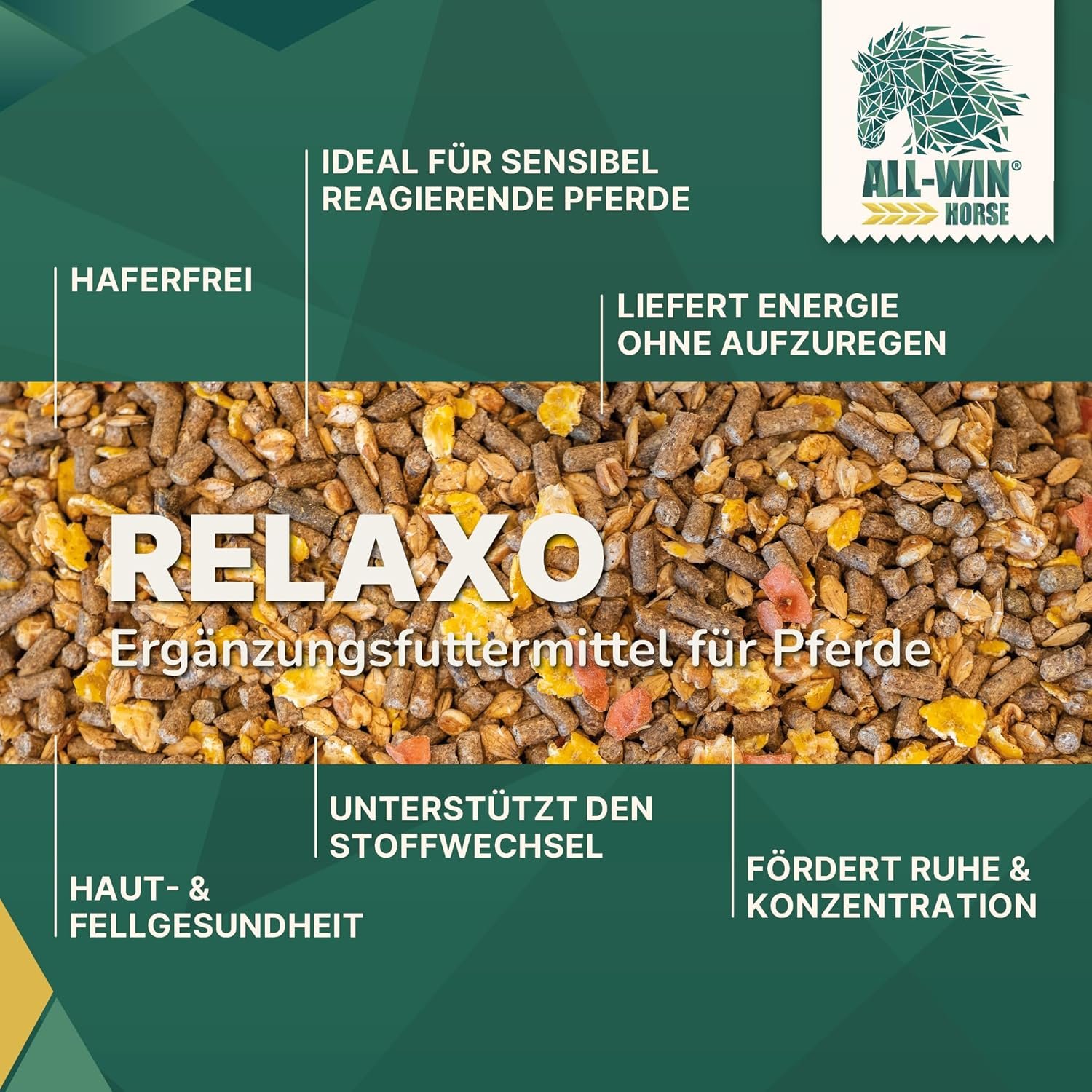 Hochverdauliche Energie ohne Hafer – Liefert konstante Energie (11,1 MJ DE/kg) ohne Aufregung – ideal für empfindlich reagierende Pferde, Freizeit- und Trainingspferde.