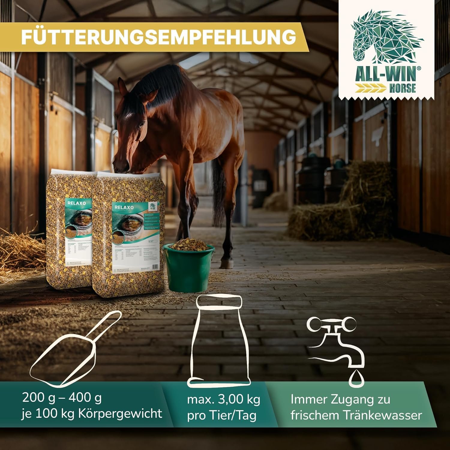 Fördert Ruhe und Konzentration – Entwickelt für nervöse, stressanfällige Pferde – unterstützt Gelassenheit ohne Leistungsverlust, ideal für Training, Transport oder Stallwechsel.