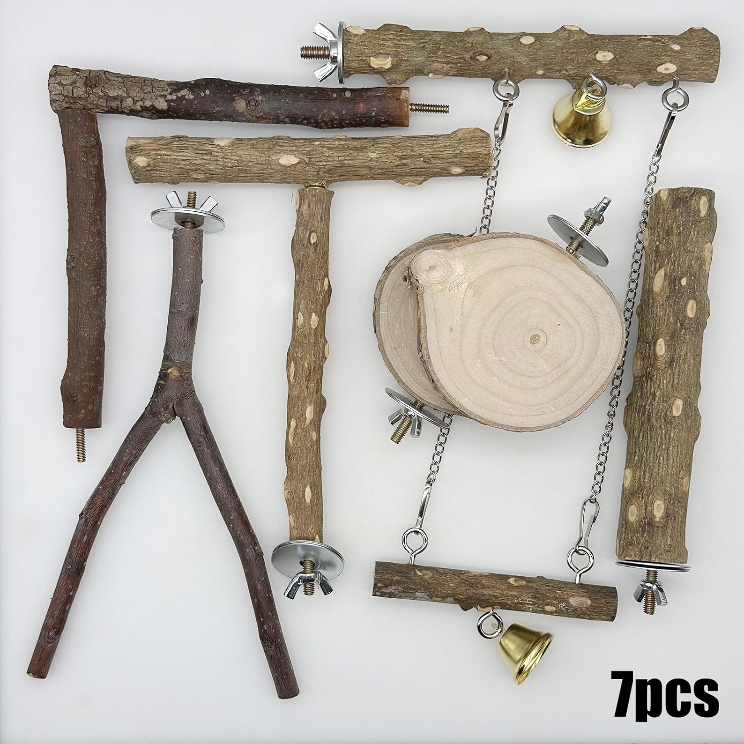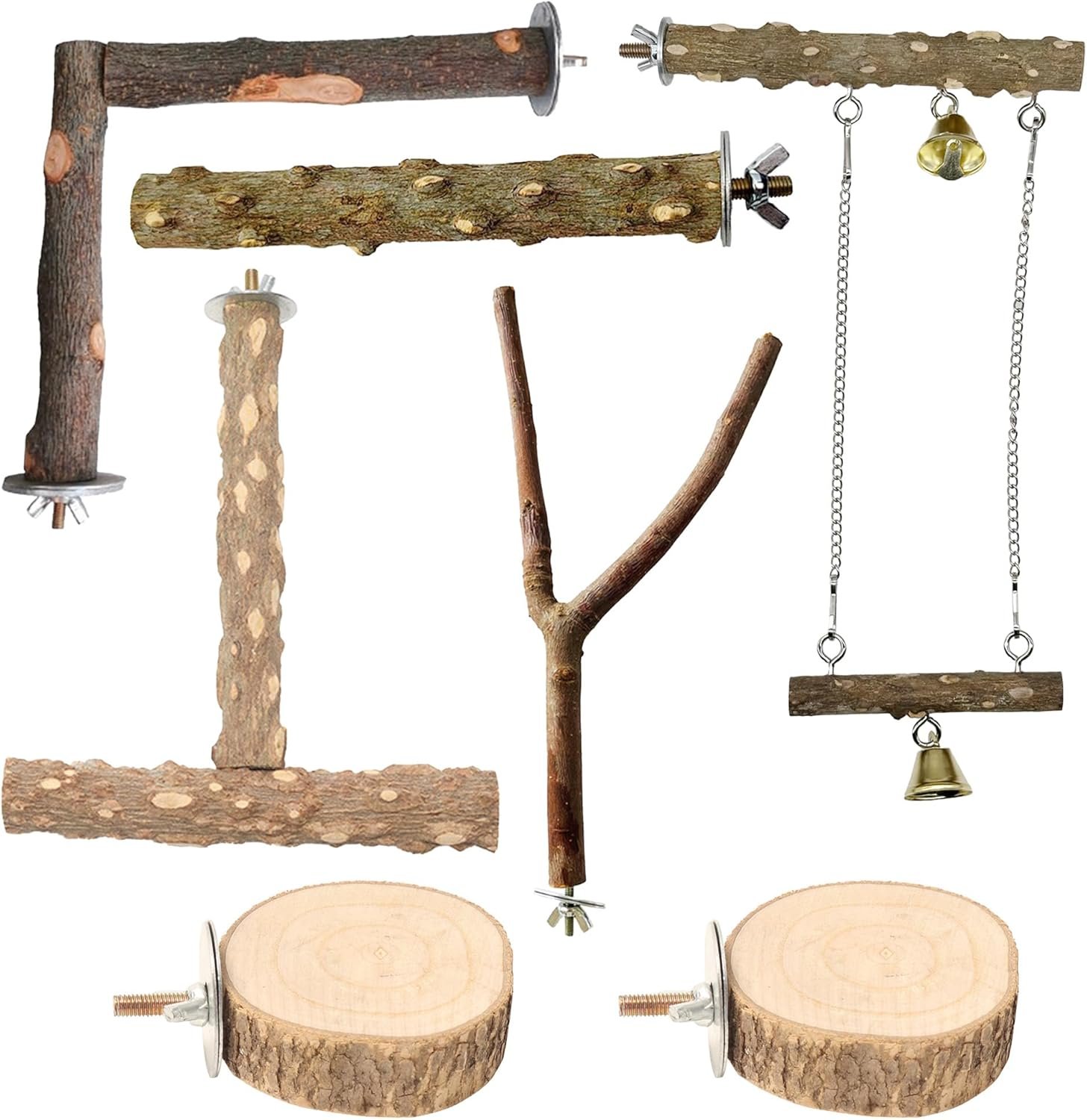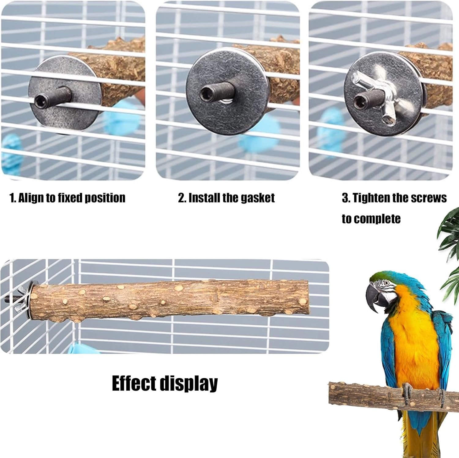 Einfache Installation: Jeder Vogelständer wird mit einer Flügelmutter aus Metall und einer integrierten Schraube geliefert. Befestigen Sie die Sitzstange aus Holzzweigen einfach mit der Schraube am Käfig.