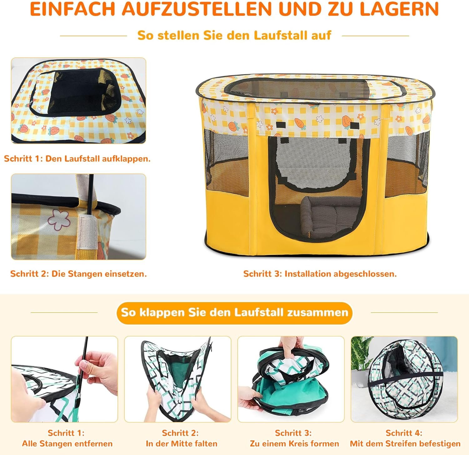 Tragbare Laufställe für Haustiere sind für kleine Haustiere wie Welpen, Katzen und Kaninchen. Wählen Sie die richtige Größe entsprechend den Bedürfnissen Ihres Haustieres.