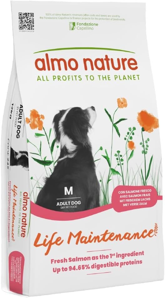 almo nature Ganzheitliches Hundefutter, erwachsener Hund (mittelgroß) mit frischem Lachs, 12 kg Für eine optimale Ernährung von Hunden gibt es mehrere Theorien: Einige behaupten, dass eine Ernährung mit ausschließlich Trockenfutter vorzuziehen sei, andere halten es für unerlässlich, eine gewisse Menge Nassfutter und Kroketten hinzuzufügen. Almo Nature hat zu diesem Thema keine eindeutige Position, erkennt jedoch an, dass Nassfutter sowohl wegen der Sättigung als auch wegen seines Gehalts an wertvollen Proteinen und Mikronährstoffen wichtig ist. Daher wird empfohlen, alle Nahrungsquellen moderat abzuwechseln, mit Ausnahme von Überlegungen im Zusammenhang mit besonderen Gesundheitszuständen. Kein Lebensmittel kann wirklich als „Qualitätslebensmittel“ gelten, wenn seine Zutaten nicht von höchster Qualität sind. Da das Futter von Almo Nature dieses doppelte Bedürfnis erfüllt, ist es die ideale Wahl für Ihren Hund, unabhängig von der Rasse.