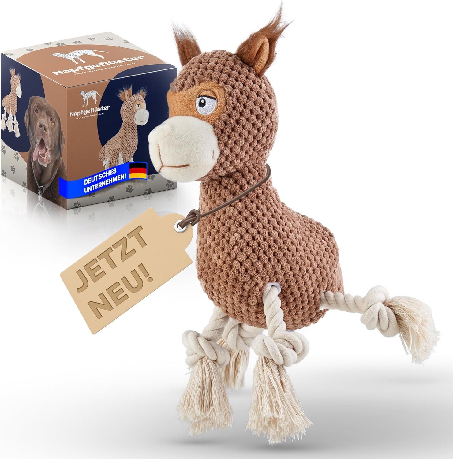 Extra robust dank Seilbeinen – Die dicht gewebten Baumwollbeine und die wasserdichte Innenschicht bieten eine erhöhte Haltbarkeit. Speichel kann nicht eindringen, das Spielzeug bleibt länger hygienisch und formstabil – perfekt für Kaufans.