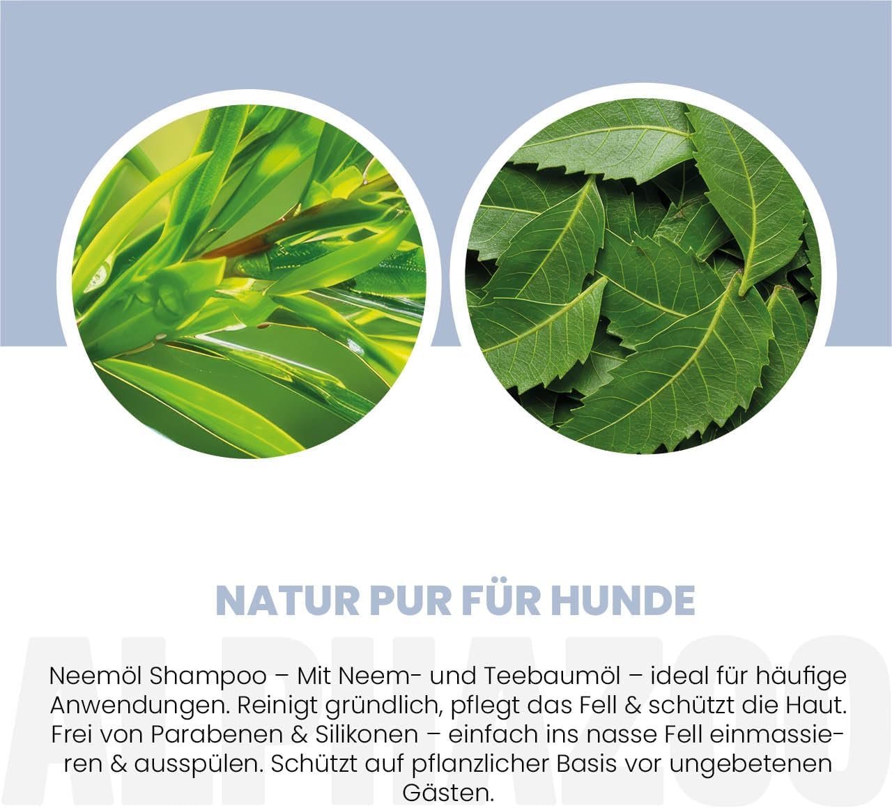 Mit Neem- und Teebaumöl: bewährte Pflanzenöle, die traditionell wegen ihrer pflegenden, hautberuhigenden und regenerierenden Eigenschaften verwendet werden. Unterstützt die Gesundheit der Haut und trägt zu einem frischen, gepflegten Fell bei.