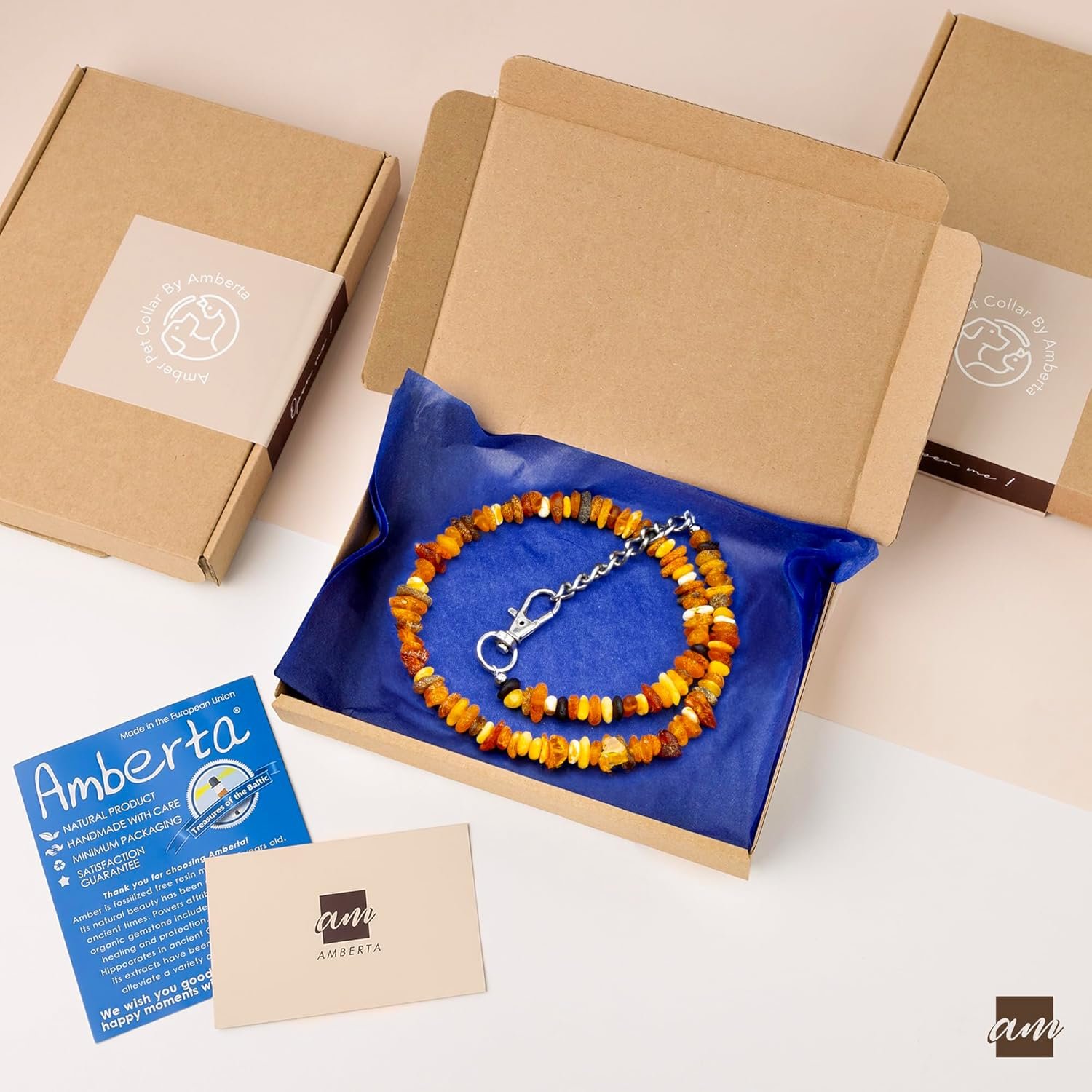 Einzigartig und natürlich. Perfekt gefertigtes Bernsteinhalsband für Haustiere. Aus den Tiefen des Meeres bis zu Bernsteinprodukten