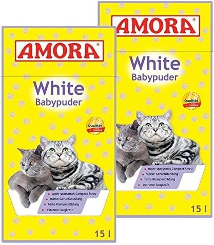 Amora Weiße Katzenstreu mit Babypuder-Duft, 30 l (2 x 15 l)