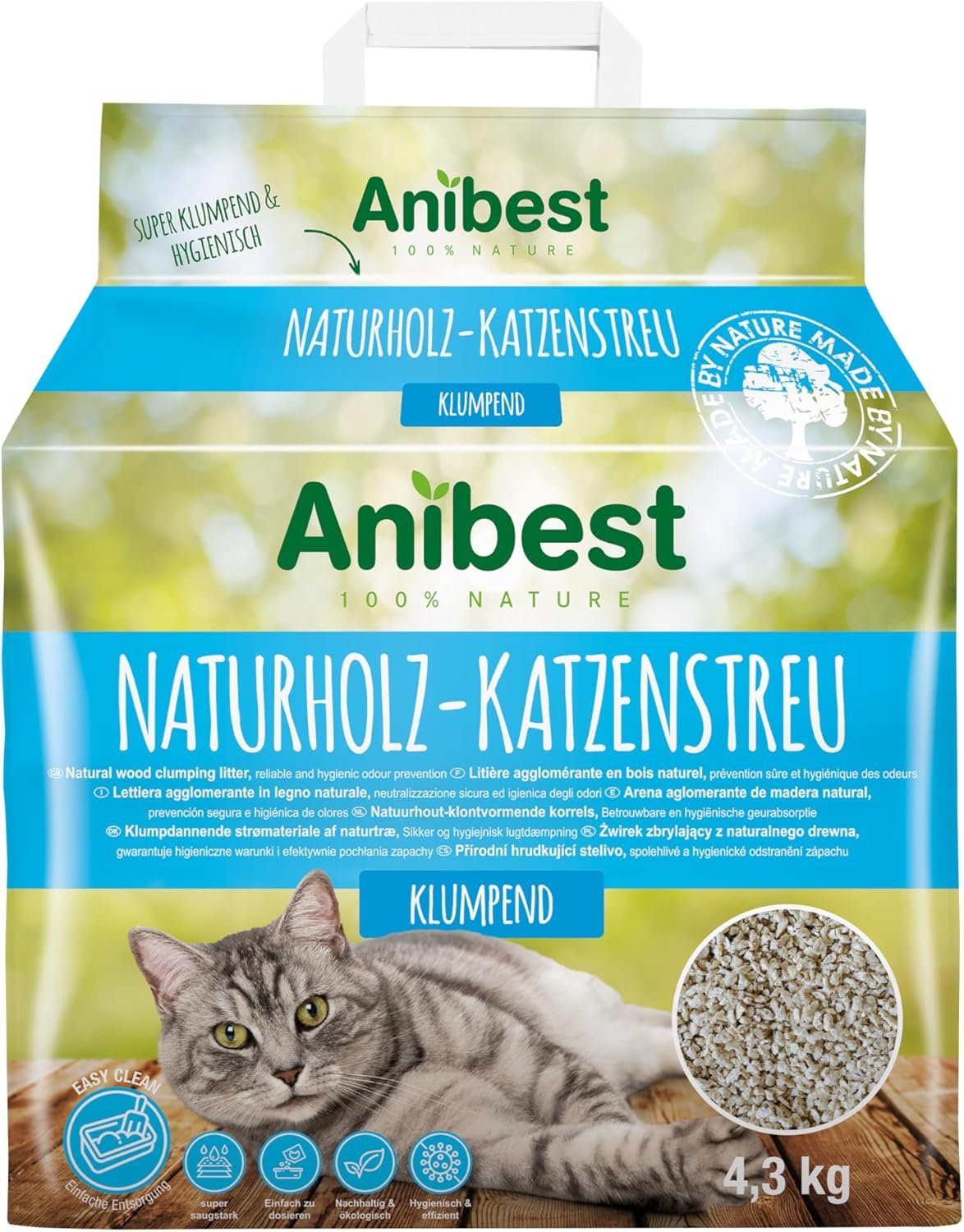 Lieferumfang: 1 x Katzenstreu, 4,3 kg / 10 Liter, saugfähige und geruchsbindende Katzenstreu von Anibest, nachhaltiges Streugranulat für Katzen. Bitte beachten Sie die örtlichen Entsorgungsvorschriften