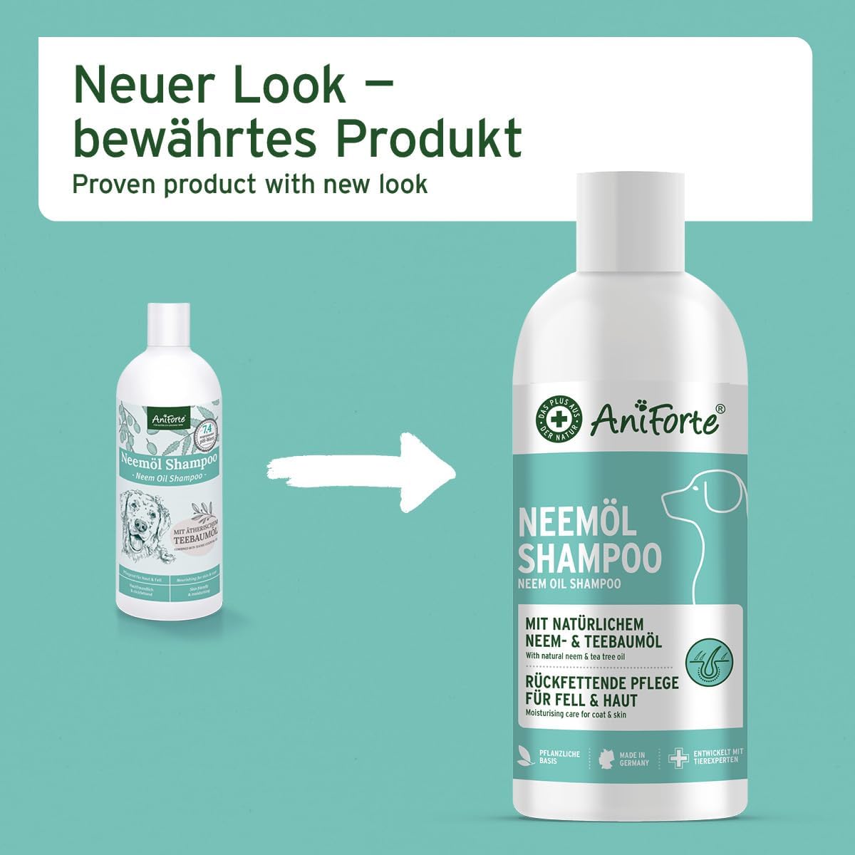 Tierpflegeprodukt für Hunde. Unser feuchtigkeitsspendendes Neemöl-Hundeshampoo versorgt trockene Haut mit Feuchtigkeit und sorgt für ein glänzendes, leicht kämmbares Fell.