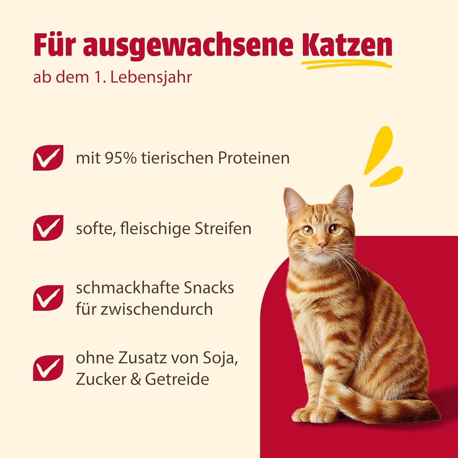 Weich und lecker: Die dünnen, fleischigen Flocken erfreuen Katzen und lassen sich leicht kauen, was sie zum idealen Snack für ausgewachsene und ältere Katzen macht.
