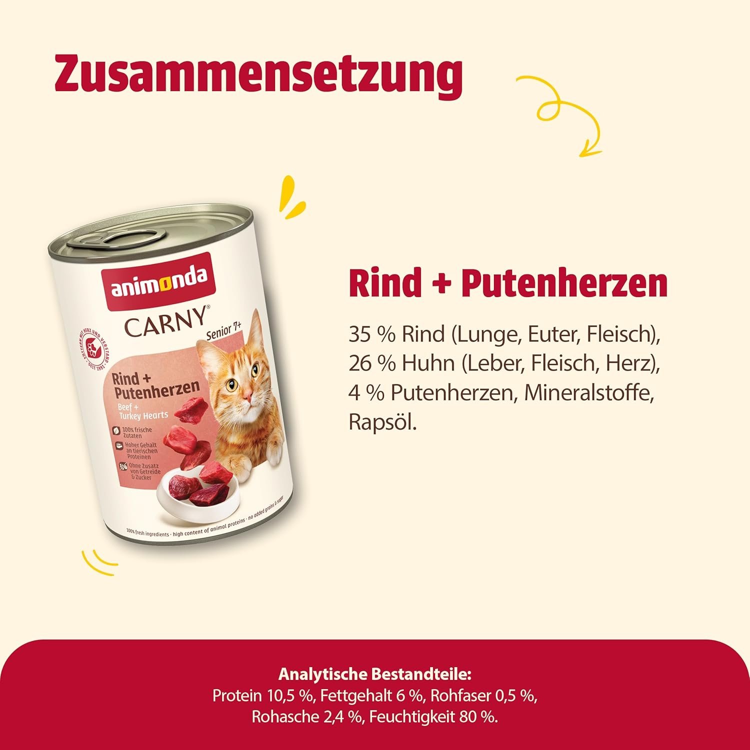 Natürliche Zutaten: Das Katzenfutter Carny Senior enthält ausschließlich hochwertige, frische, fleischige Zutaten und keine künstlichen Zusatzstoffe oder Zucker und Getreide